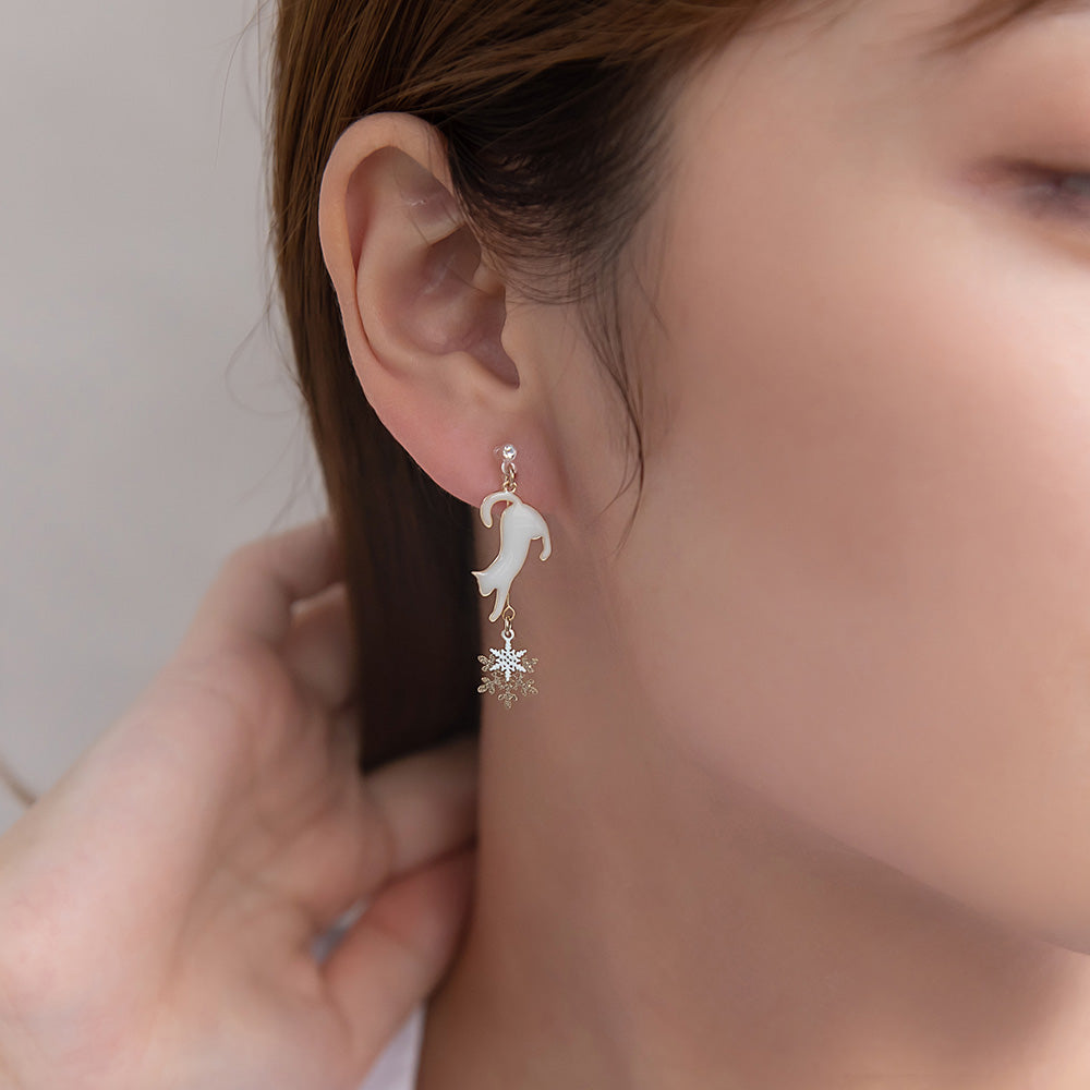 Instantly add charming winter sparkle to your style with our Winter Cat Invisible Clip Ons. Featuring an adorable white cat motif and beautiful snow crystal accents, these delicate earrings instantly bring romantic charm to any outfit. Designed with lightweight, invisible plastic clip-on backs, they offer all-day comfort—even for sensitive ears. Treat yourself or gift them to someone who loves a touch of cute, festive fun!