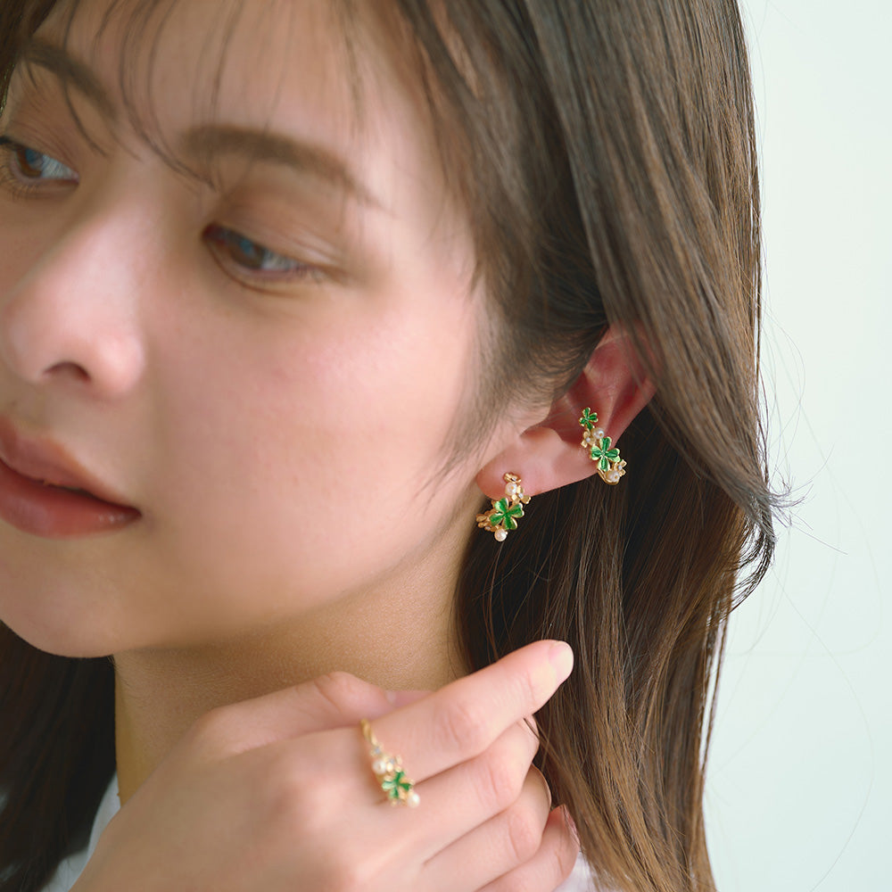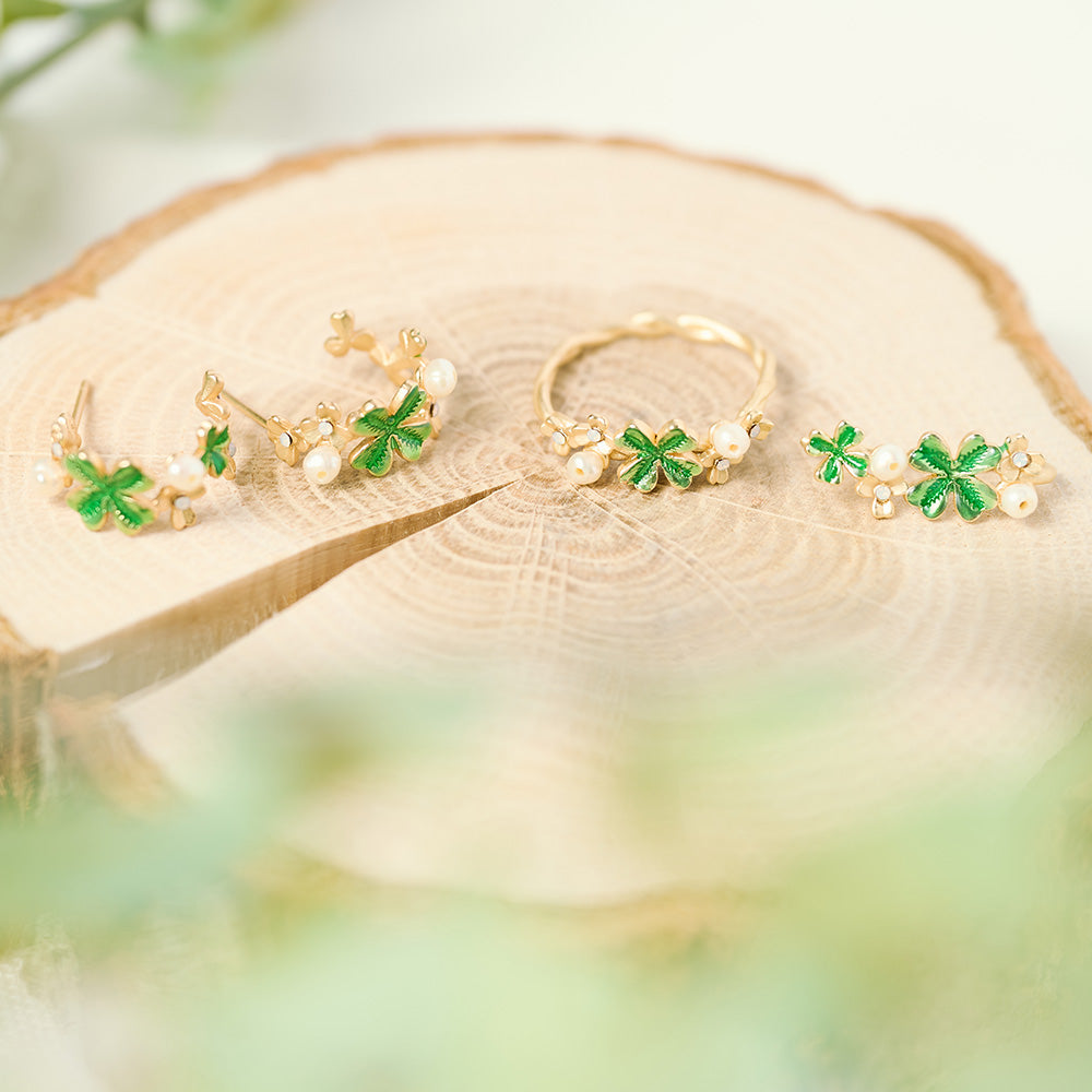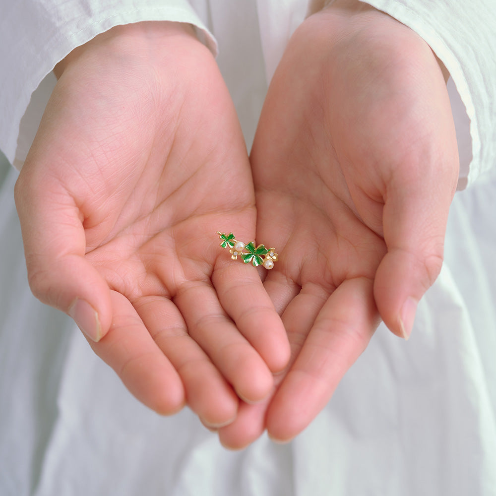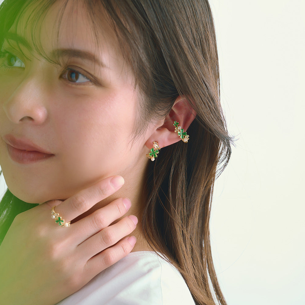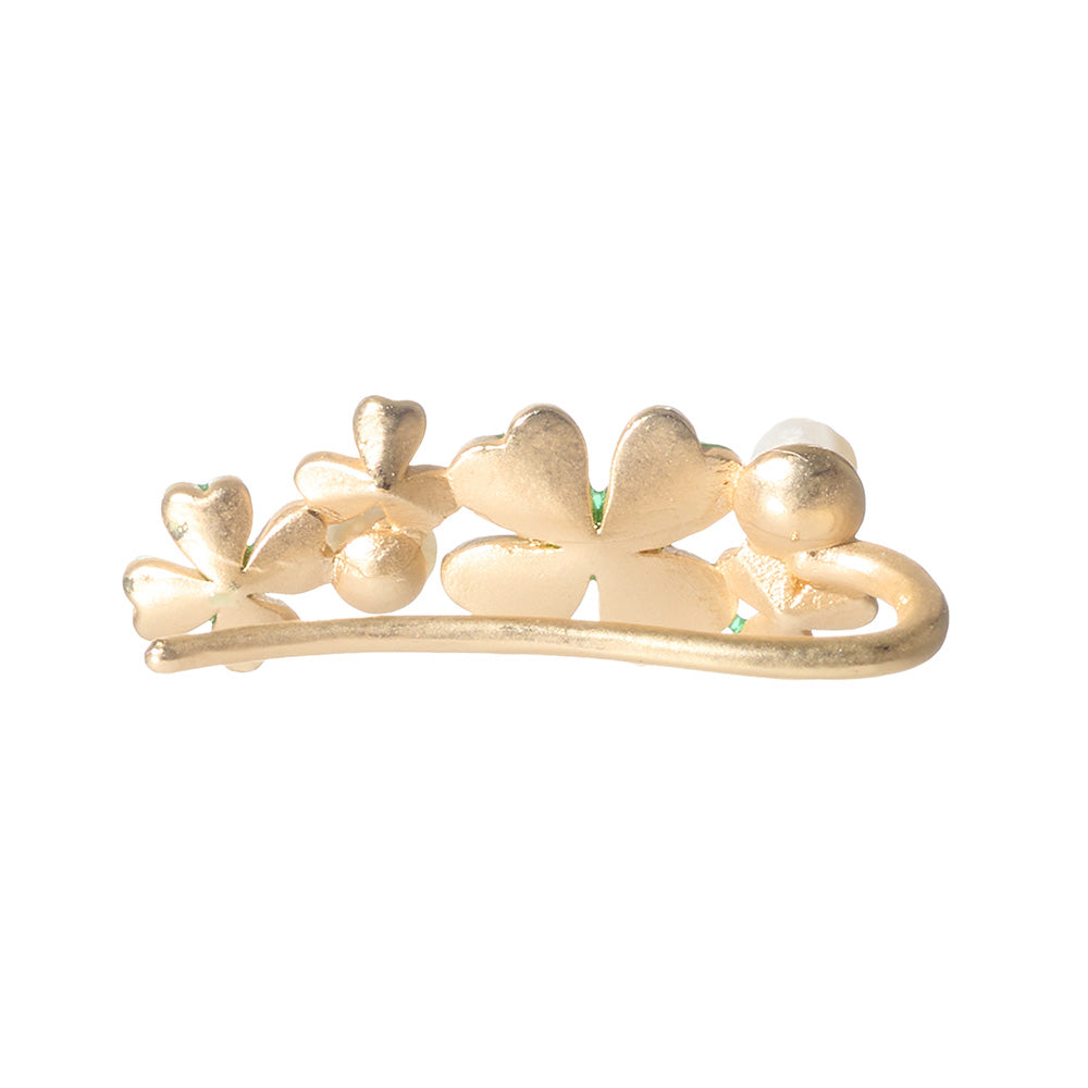 Bless your look with our Lucky Clover Ear Cuff, a piece inspired by the serene sunlit garden. Intricately detailed with iconic clovers accented with freshwater pearls, these delicate, organic accessory is crafted to bring a touch of luck to your everyday style.