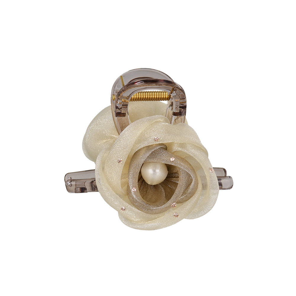 Add a touch of feminine elegance to your look with our Tulle Flower Hair Claw. Decorated with a delicately crafted tulle flower accented by a faux pearl and dazzling stones, this hair clip blends romantic charm with effortless style. Perfect for special occasions or elevating your everyday ensemble, it offers a timeless finishing touch that turns heads and completes your outfit with grace.
