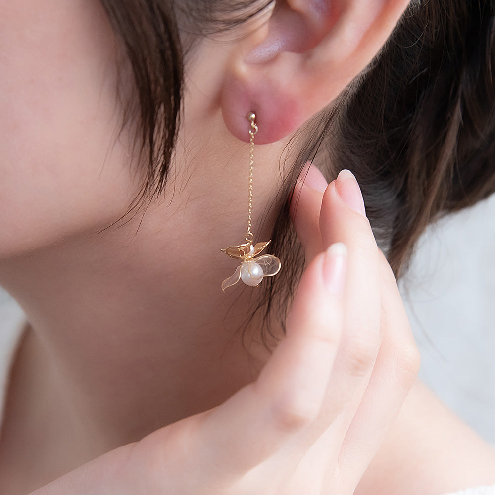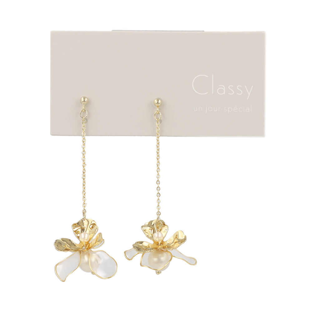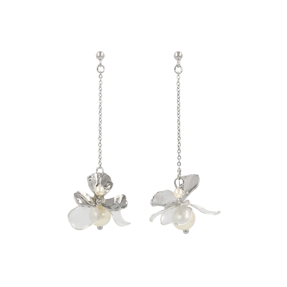 Mixed Petal Pearlized Flower Drop Earrings