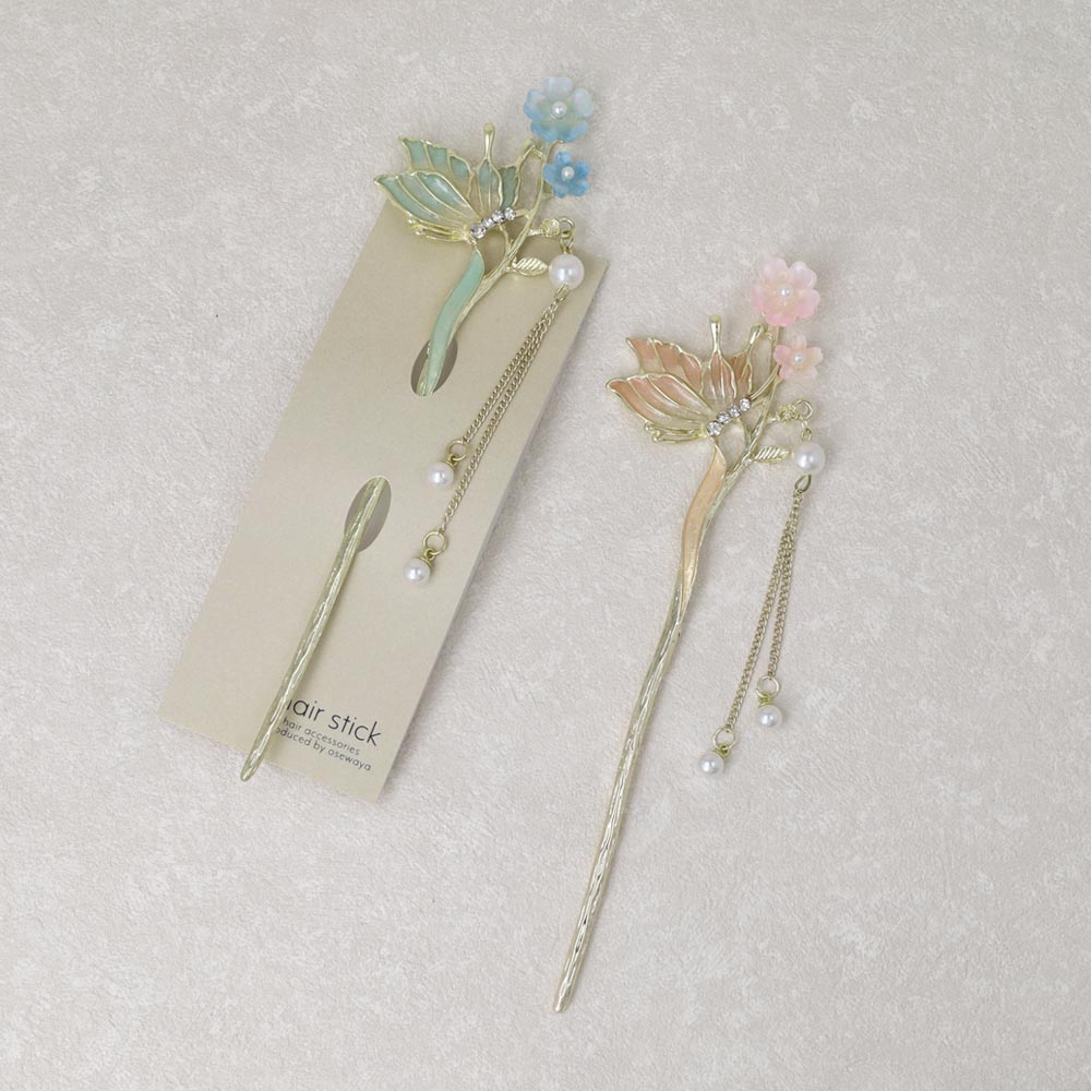 Celebrate timeless elegance with our Butterfly and Flower Kanzashi Hair Stick. Delicately adorned with a butterfly and softly colored flowers, this stunting accessory captures the essence of grace and tradition. Whether you're enhancing an everyday hairstyle or completing a formal kimono ensemble, this versatile piece reflects a deep appreciation for culture and craftsmanship.