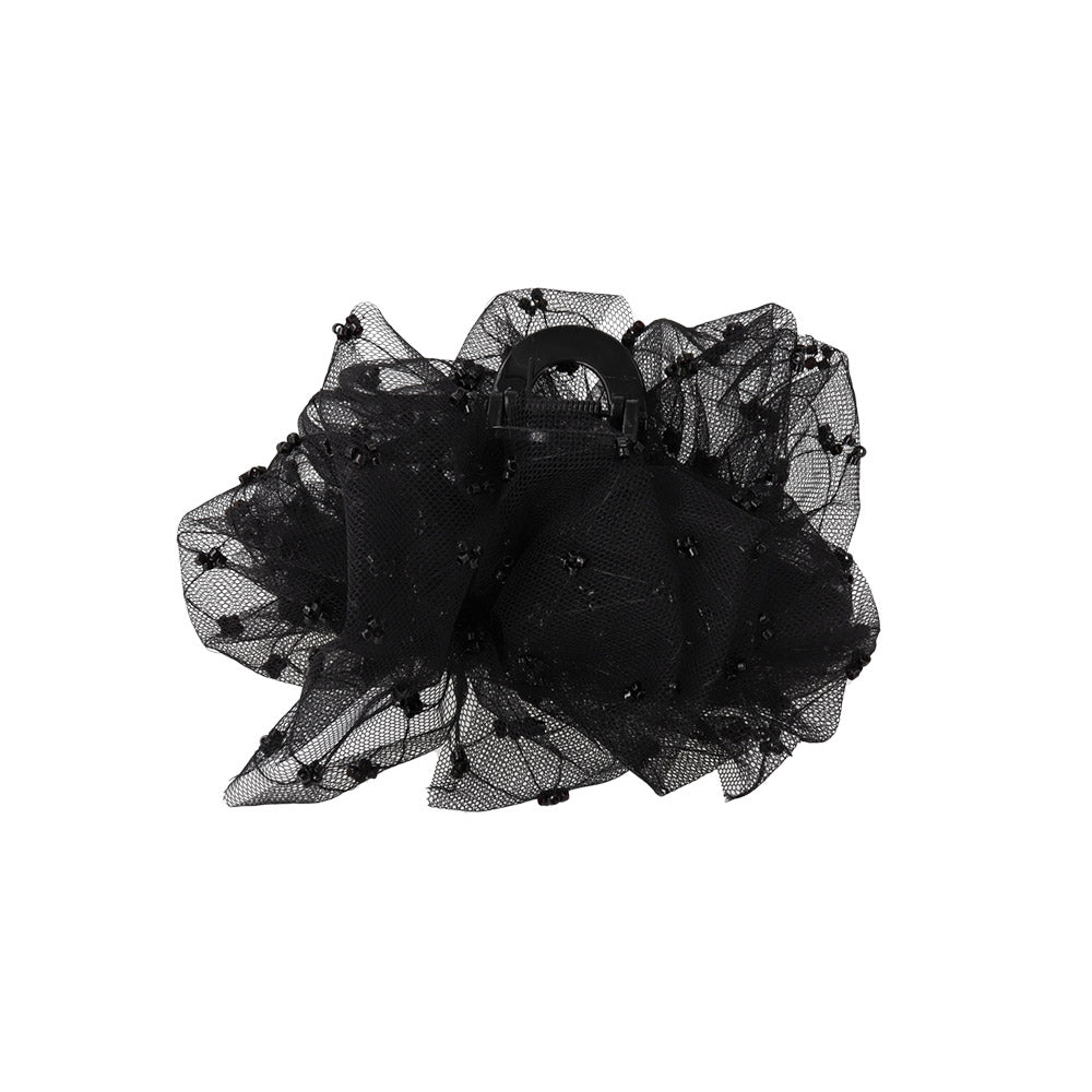 Channel your elegant era with our Ruffle Tule Hair Claw. Thoughtfully decorated with a tulle fabric accented by tiny beads, this hair clip is the perfect blend of glamor and practicality. Whether you're preparing for a special occasion or looking to elevate your everyday style, this stylish hair clips is your solid staple piece.