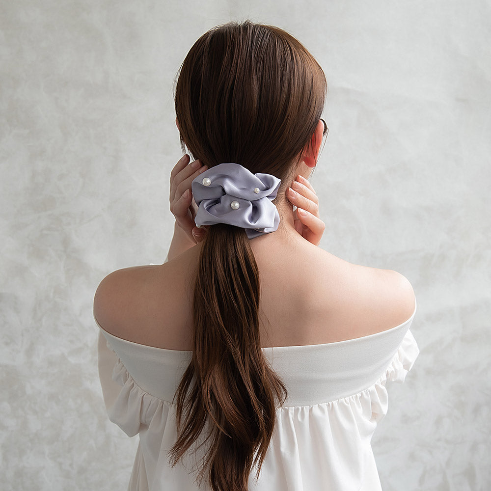 Elevate your everyday look with our Pearl Encrusted Scrunchie. Crafted with soft shimmering satin encrusted with lustrous faux pearls, this scrunchie offers something elegant and inspired. Whether it’s a workday, weekend, or night out, this scrunchie is the perfect finishing touch.