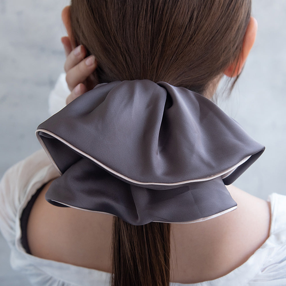 Make a bold statement with our Trimmed Big Scrunchie. Crafted from a soft, sleek fabric accented by a skinny trim detail, this oversized scrunchie adds instant volume and elegance to any hairstyle. Whether holding up a bun, or perking up a ponytail, it’s your effortless shortcut to trend-setter style.