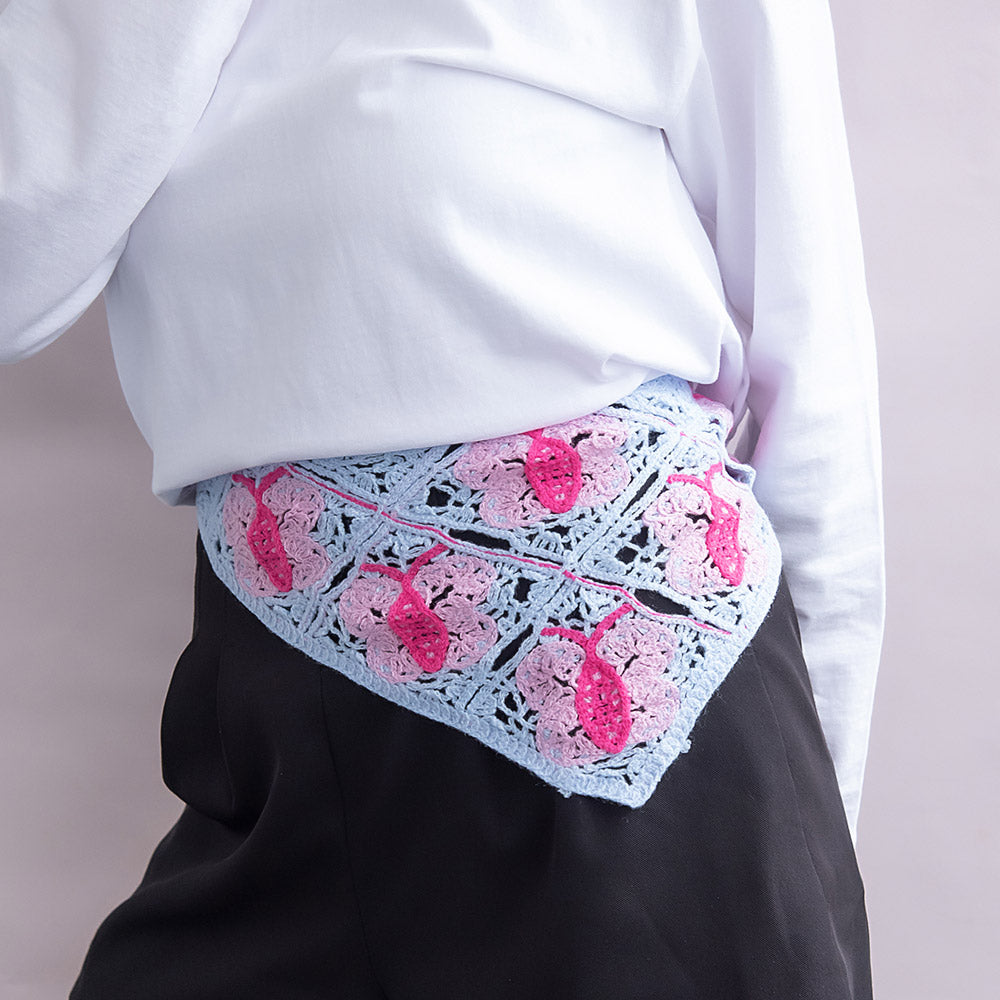 Transform into a trend setter with our Butterfly Crochet Triangle Headscarf. Finished in a vibrant butterfly pattern, this crochet headscarf brings an effortless, retro vibe to any look. Wear it as a neck scarf or a belt to uncover extra styling possibilities too!