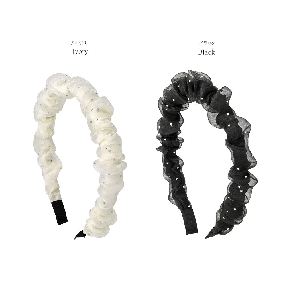 Brighten your look with our Metallic Dot Ruffle Headband. Featuring a ruffle detail and tiny sparkling dots, this headband effortlessly adds romantic charm to any outfit. Perfect for a casual date or elevating your everyday look, it’s a versatile choice you’ll reach for all year round.