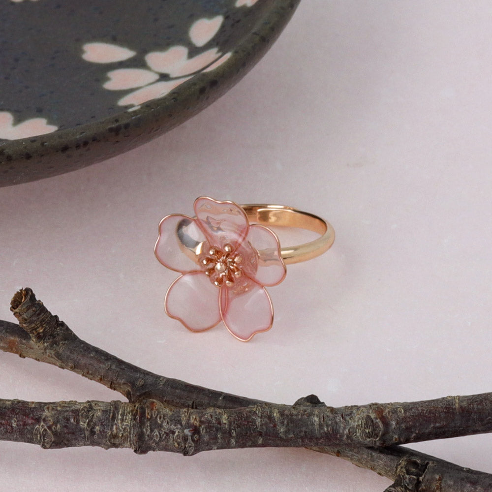 Add a touch of Japanese elegance to your ensemble with our Translucent Sakura Cuff Ring! Featuring the fleeting beauty of cherry blossoms, this ring is perfect for those who appreciate Japan's rich culture. Its elegant and sophisticated design will make you stand out at  hanami or matsuri.