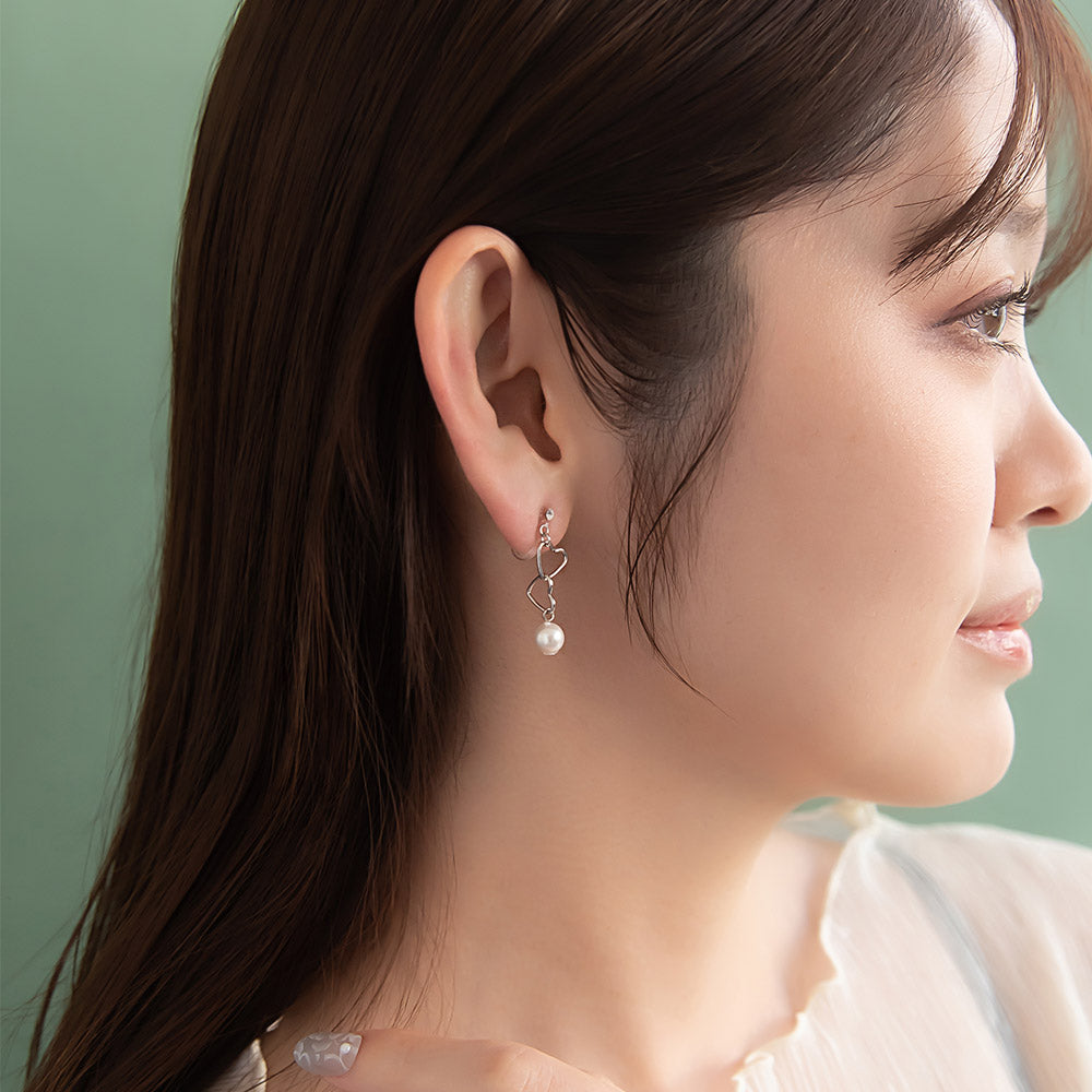 No piercings? No problem! Elevate your earscape with our Heart Link Pearl Drop Invisible Clip On Earrings. Featuring delicate linked hearts with a lustrous faux pearl, these earrings are perfect for those who appreciate lovely elegance. Designed with lightweight plastic clip-on backs, they provide exceptional comfort, even for sensitive skin. Perfect for adding a touch of sophistication without the need for pierced ears, these earrings blend style and practicality at once.