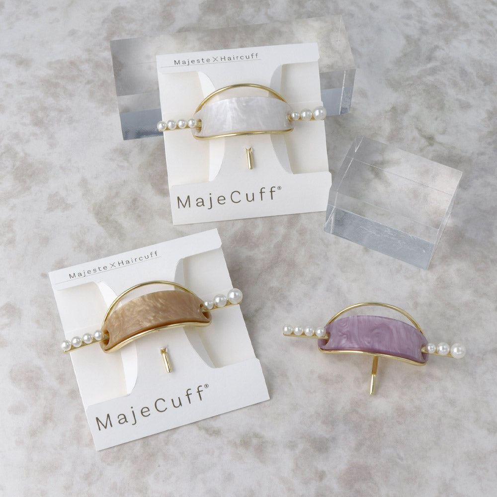 Upgrade your hairstyle effortlessly with our Maje Cuff Collection ? a stylish and practical hair accessory imitating a stick barrette, also known as 'hair majeste' in Japan. The hook detail on the back of the design gives you an instant styling trick, keeping the ornament in place all day.