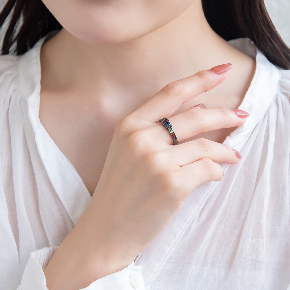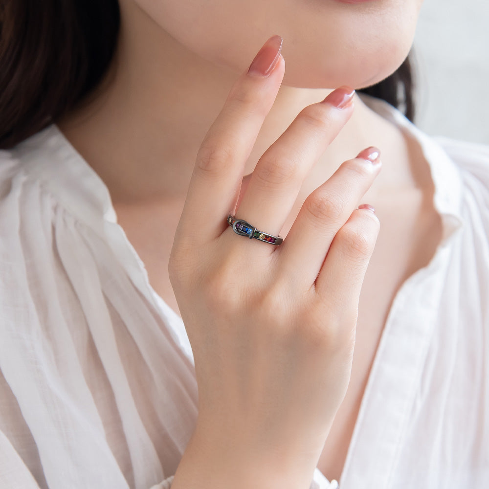 Add a touch of modern elegance to your daily style with our Multi Stone Buckle Ring. A chic gunmetal base and an array of vivid stones come together in bold contrast, making it a versatile statement piece from office to weekend. Designed with nickel-free materials for all-day comfort, it’s the perfect choice for sensitive skin.