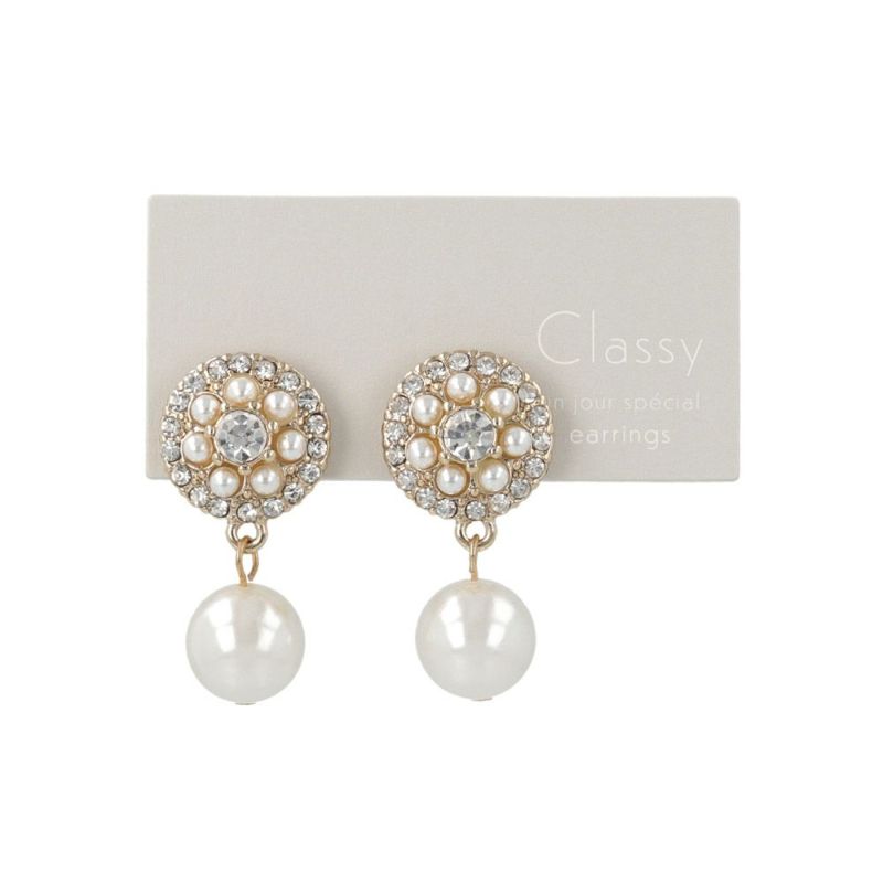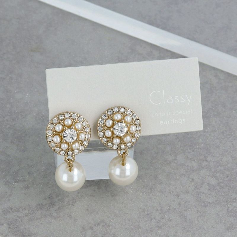 Step into your classy glamour era with our Pave Disc Pearl Drop Clip On Earrings. Featuring a decorative disc motif hung with a lustrous faux pearl, these luxe clip-ons add a touch of sophisticated elegance to your earscape. Whether you're dressing up for a party night or adding a subtle glam to your casual outfit, these earrings are the go-to accessory you'll reach for year-round.