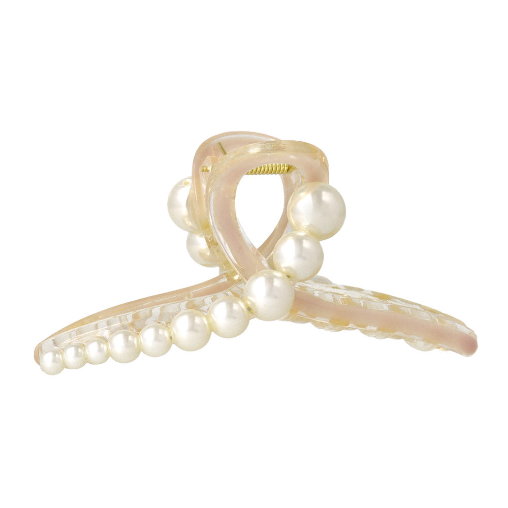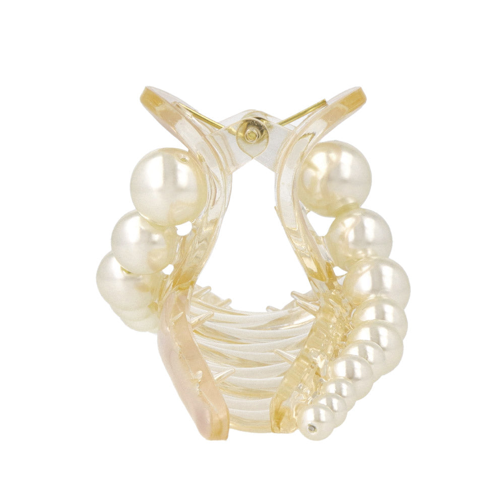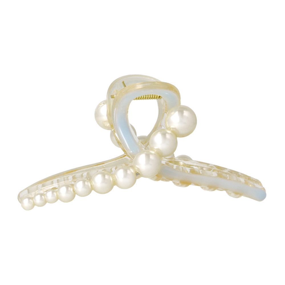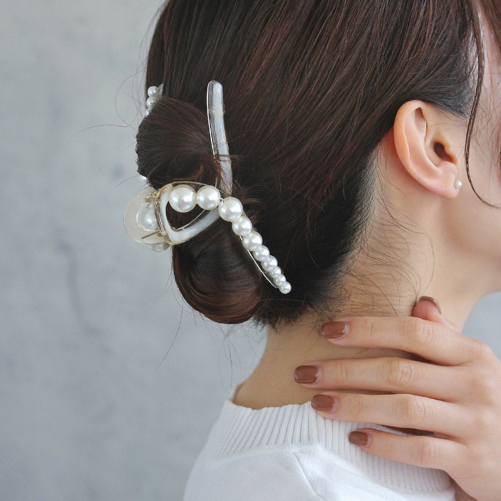 Elevate your hair game with our Pearlized Loop Hair Claw. This stunning piece features a decorative design adorned with faux pearls, adding a touch of elegance and sophistication to any look. Whether dressing up or down, it's the perfect accessory for K-fashion lovers. Upgrade your style and stand out with this luxurious hair accessory.