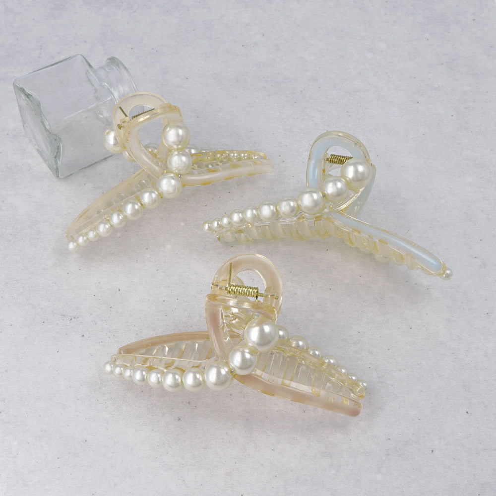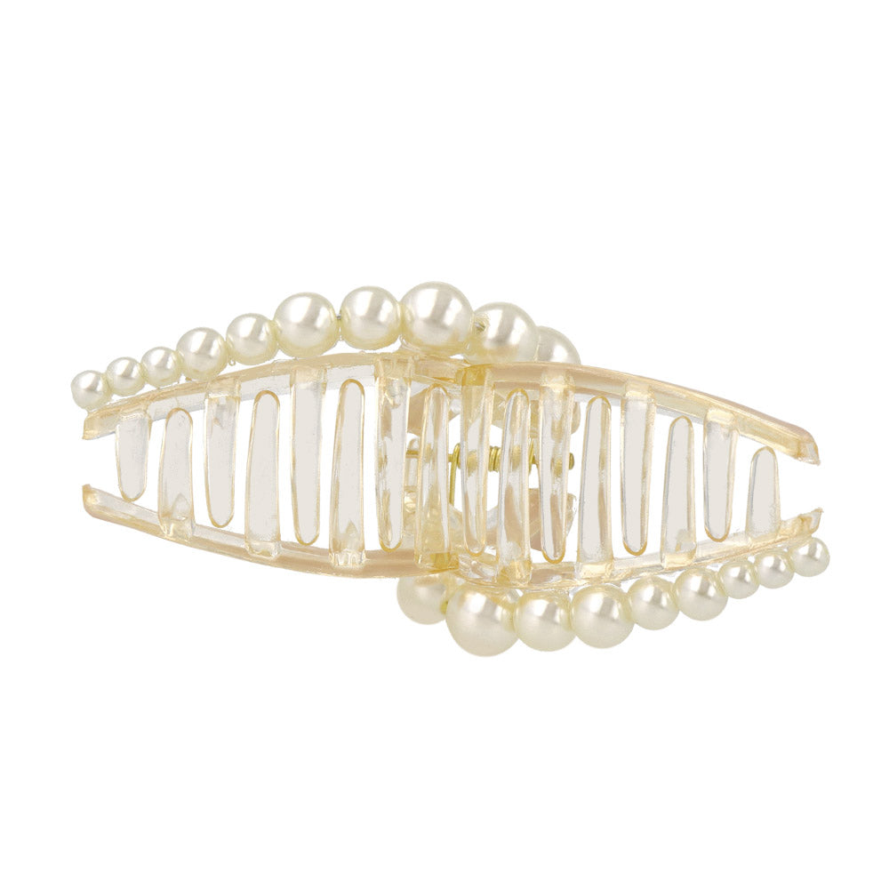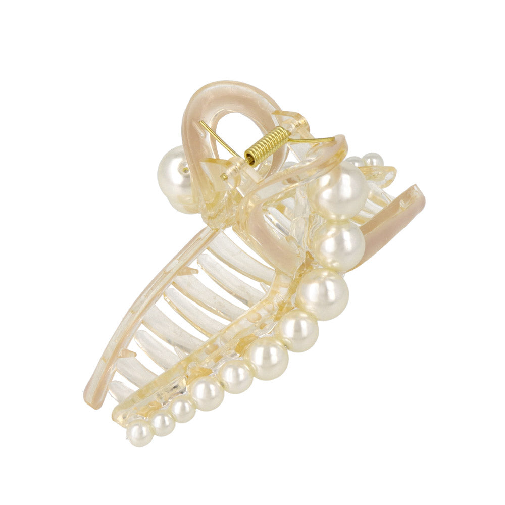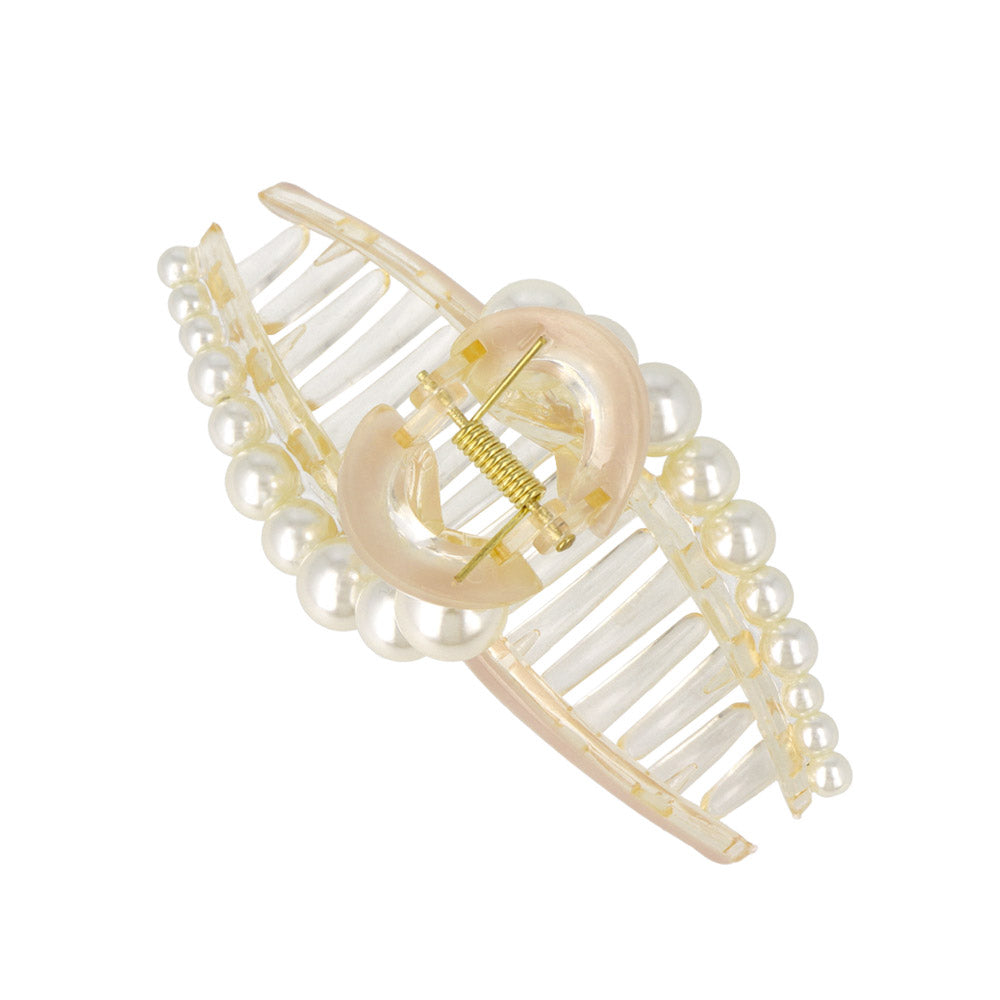 Elevate your hair game with our Pearlized Loop Hair Claw. This stunning piece features a decorative design adorned with faux pearls, adding a touch of elegance and sophistication to any look. Whether dressing up or down, it's the perfect accessory for K-fashion lovers. Upgrade your style and stand out with this luxurious hair accessory.