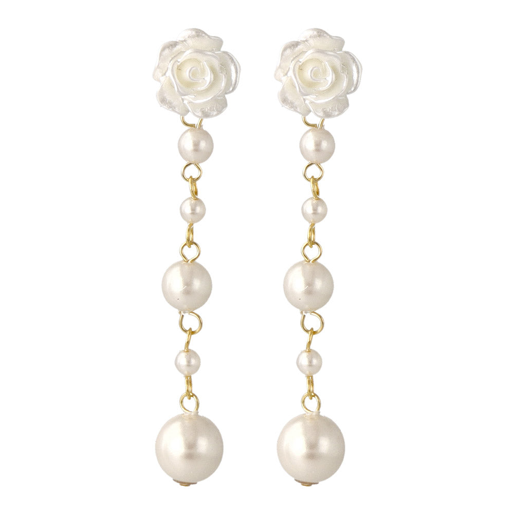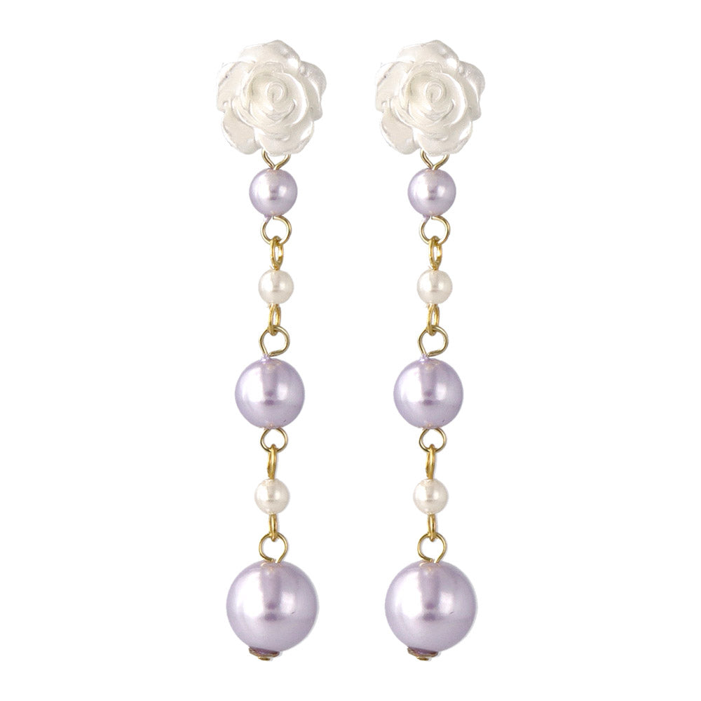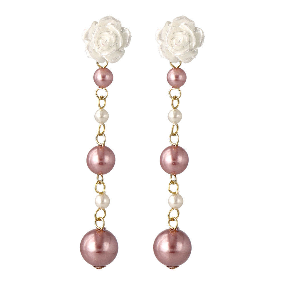 Rose and Gradient Pearl Drop Plastic Earrings