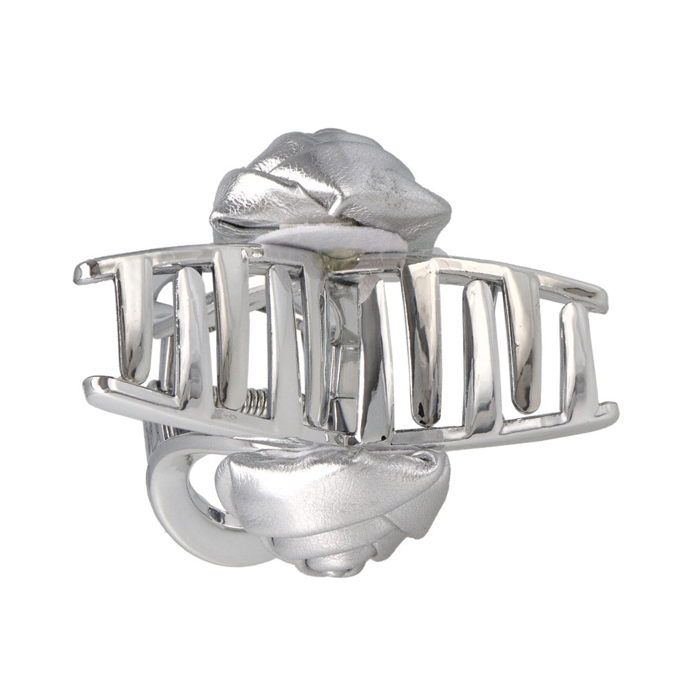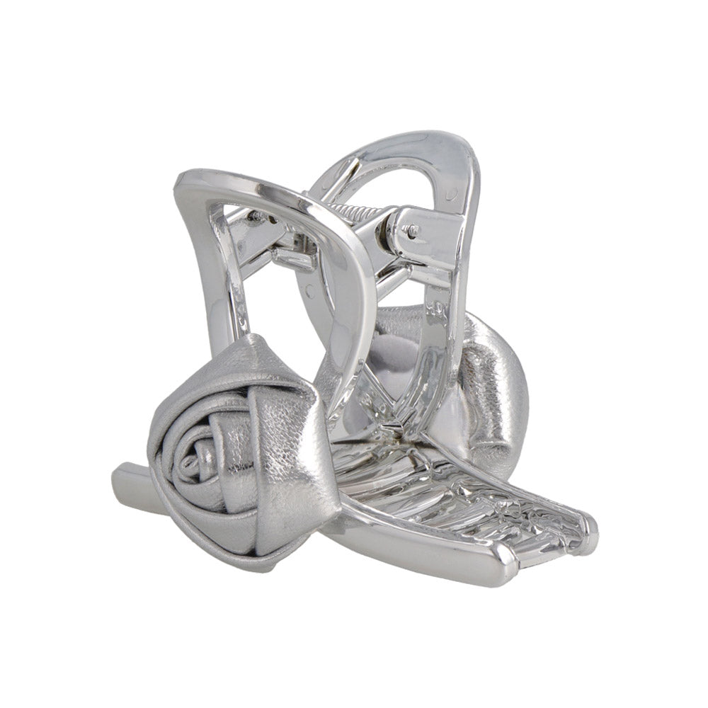 Elevate your style with our Faux Leather Rose Hair Claw. Crafted with a sleek silver-tone base, this statement hair accessory features a beautifully detailed faux leather rose—bringing together elegance and modern flair. Ideal for trendsetters who appreciate the latest in K-fashion, this hair claw offers a chic and versatile look for any occasion. Perfect for those in the MZ generation who adore a blend of sophistication and trend-forward design.