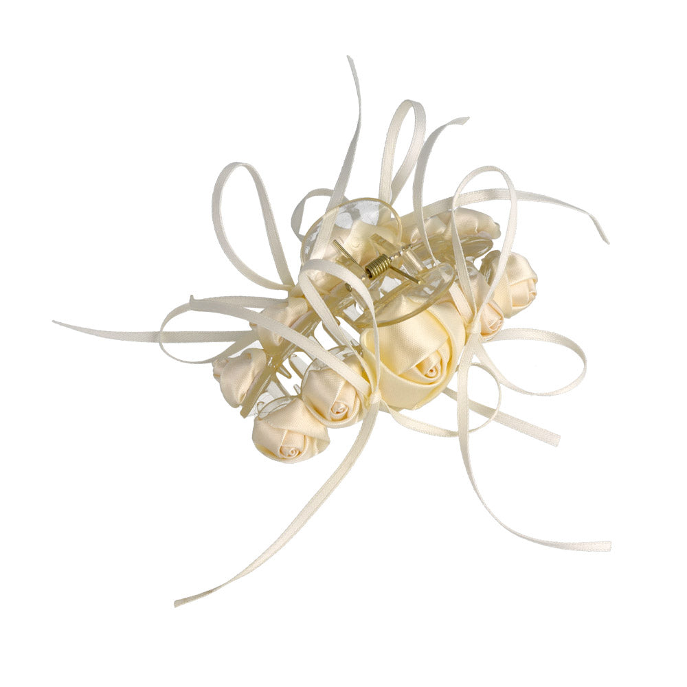Unveil your sweet, romantic side with our Ribbon Rose Hair Claw. Beautifully decorated with elegant ribbon roses, this hair clip instantly adds sophisticated elegance to your look. Whether you are looking to accent occasional outfits or steeping into your balletcore era, it is bound to be your staple piece all year round.