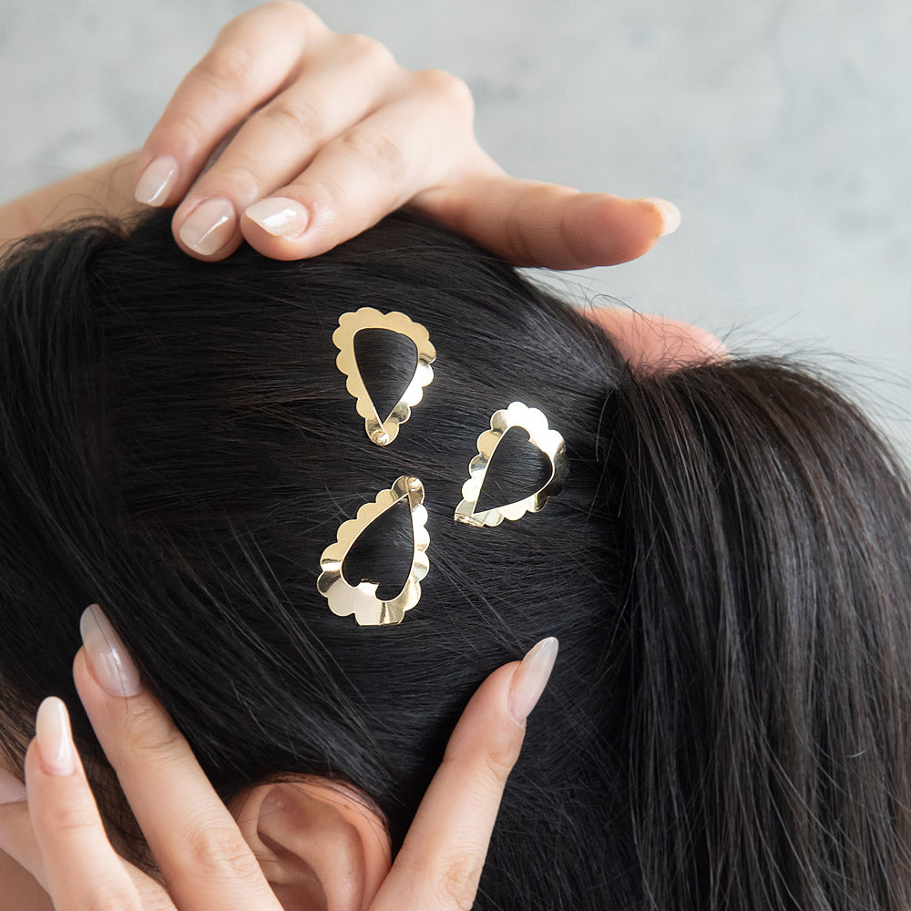 Indulge in sweetness with our Frilled Open Heart Snap Clip Set. Featuring an open heart design finished with a frill detail, this hair clip set instantly adds charm and presence to your style. Whether you're getting ready for a cafe date or simply looking to elevate your everyday look, they are the perfect way to level up your hair game.