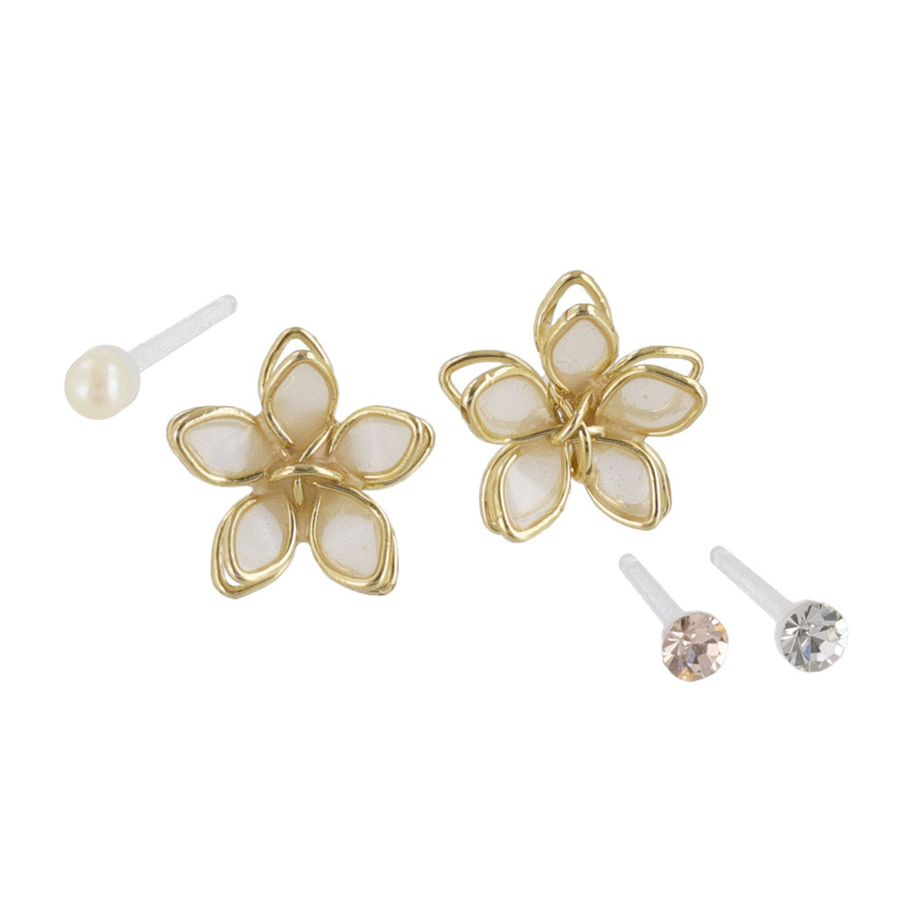 Embrace the delicate elegance of our Flower Plastic Post Earring Pack. Including exquisite flower earrings and simple studs, this earring set adds a fresh and creative twist to your collection. Perfectly lightweight and hypoallergenic, the plastic earring posts ensure all-day comfort, making them ideal for sensitive skin. Mix, match, and discover unique combinations that help you showcase your taste of style and personality.