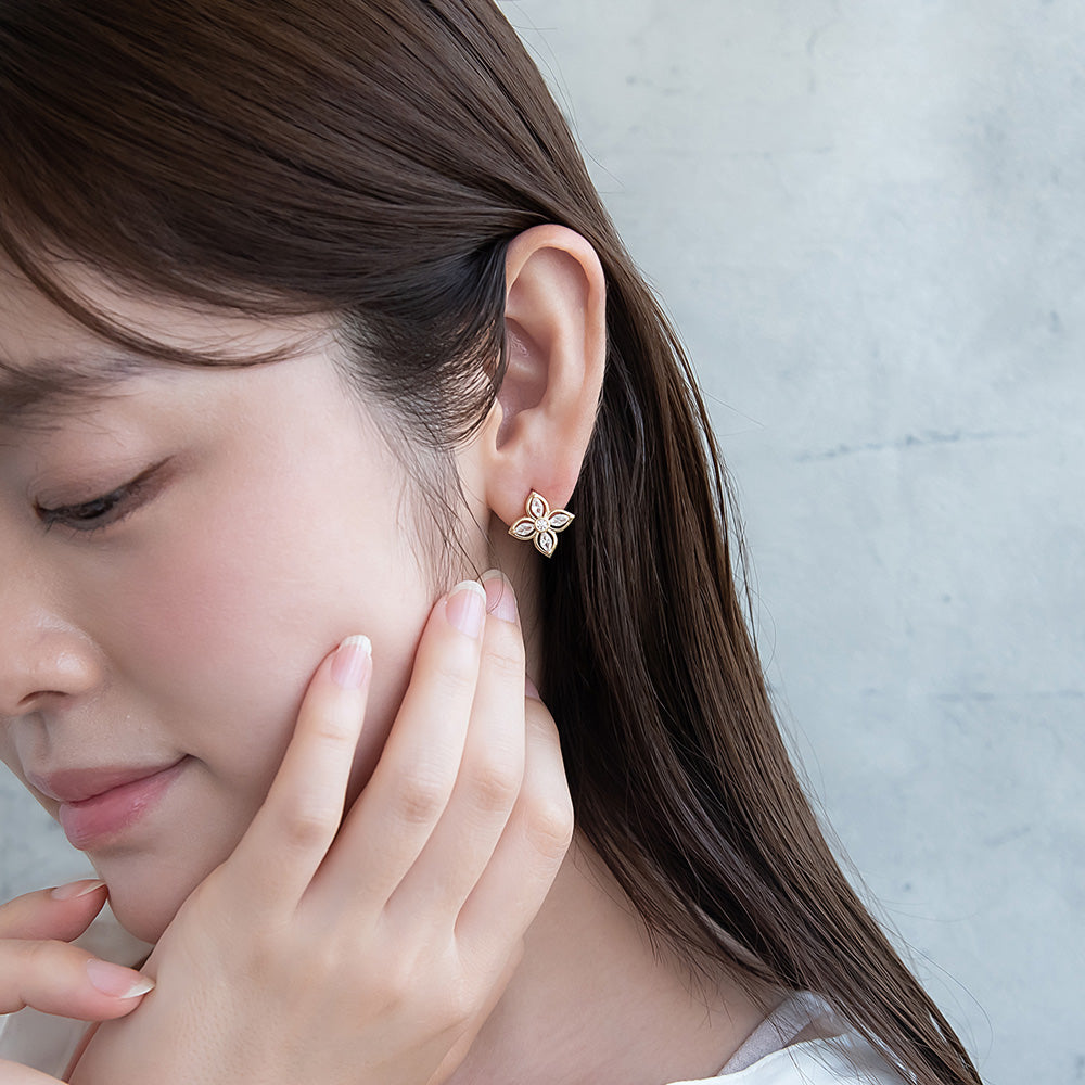 Bold, feminine, and effortlessly elegant—our Four Petal CZ Flower Earrings are designed to turn heads. Featuring a dainty flower shape embellished with sparkling cubic zirconia stones, these earrings shine from every angle. Crafted from nickel-free materials for all-day comfort, they're perfect even for sensitive ears. Whether you're dressing up or going casual, these earrings bring instant polish to any look.