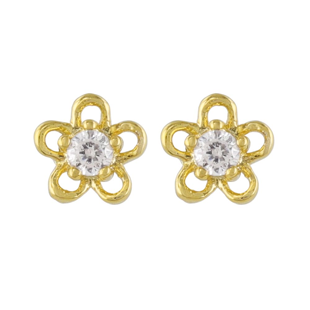 Add a hint of glam to your style with our CZ Flower Stud Earrings. These minimalist earrings feature a dazzling five-petal flower design accented by a cubic zirconia center, adding a touch of sophistication and  class to any outfit. Thoughtfully crafted from nickel-free materials, they offer a comfortable fit—even for sensitive ears.