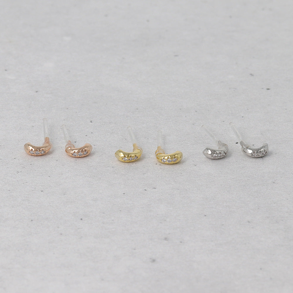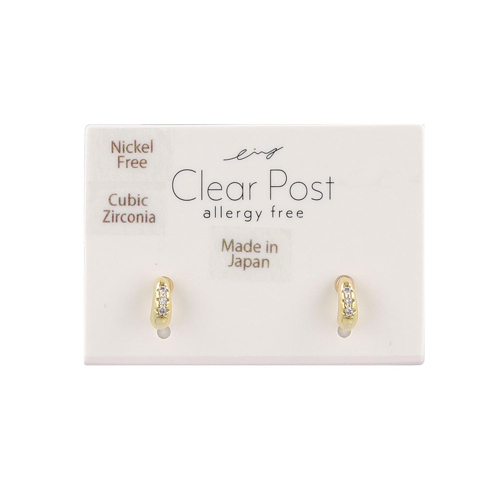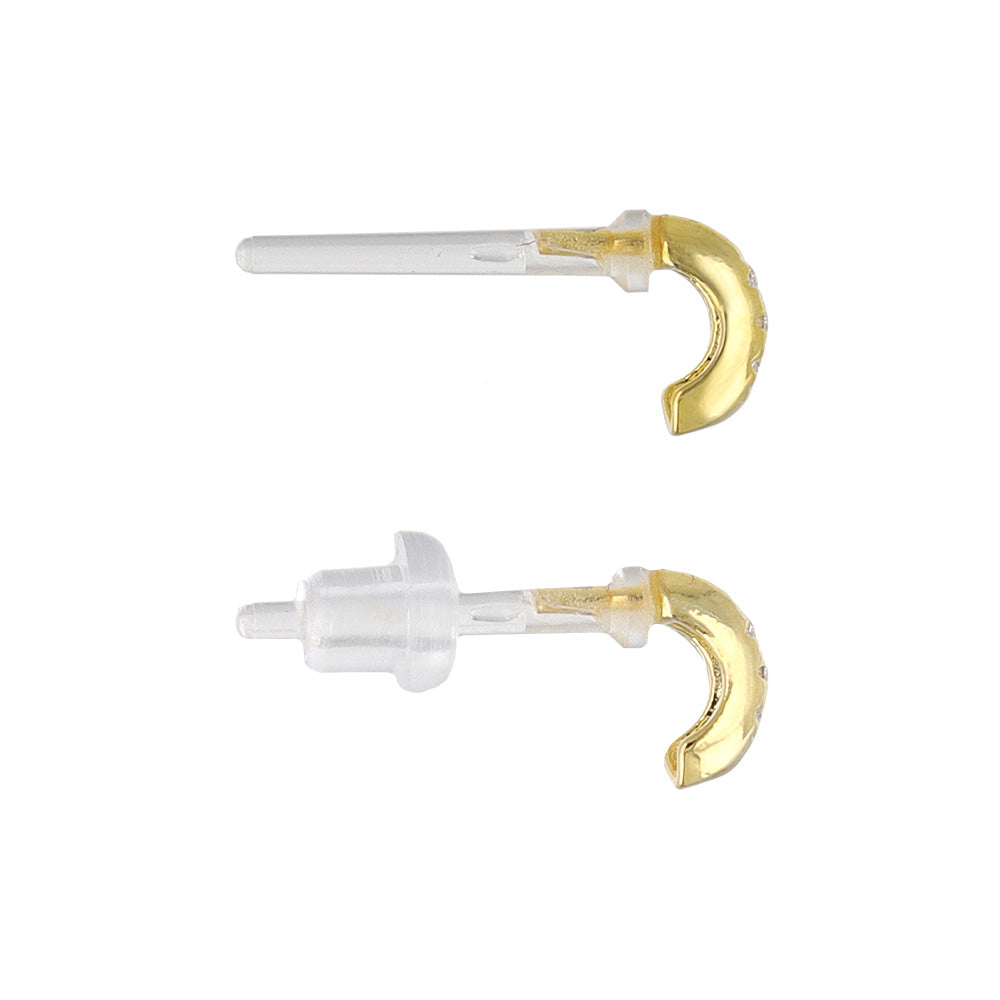 Elevate your earscape with our CZ Studded Half Hoop Plastic Earrings. Featuring a minimal design with cubic zirconia accents, these earrings bring a modern, effortless touch to any look. Perfectly lightweight and hypoallergenic, their plastic earring posts ensure all-day comfort—ideal for sensitive skin. Understated yet elegant, they transition seamlessly from the office to the weekend.