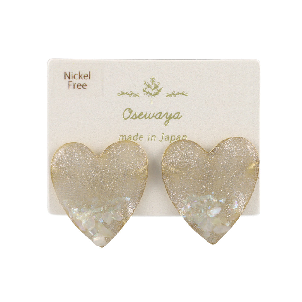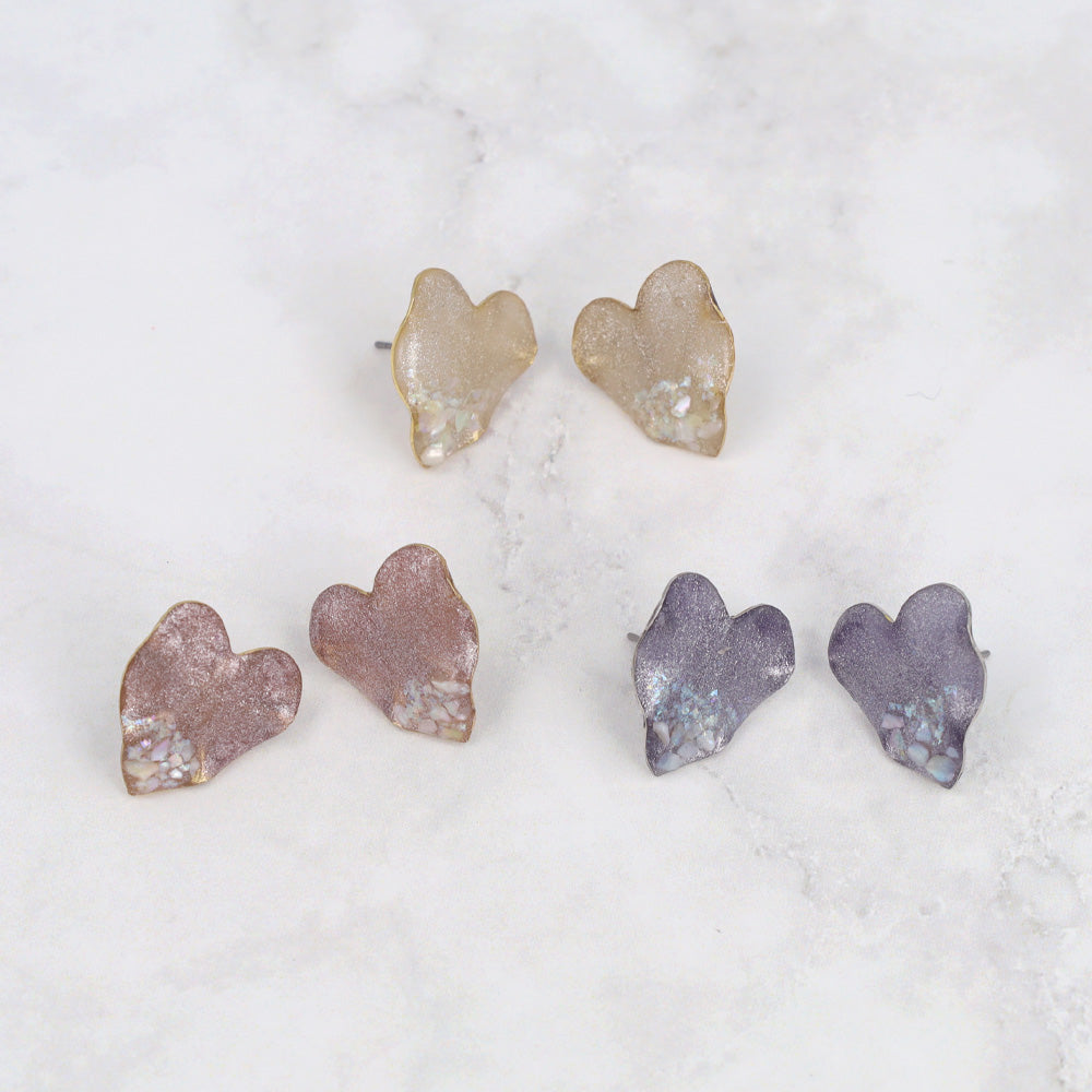 Capture a look that is both romantic and luminous. Featuring a soft, muted heart motif, our Glitter Heart Stud Earrings reveal their beauty through thoughtful detailing. Each earring is delicately finished with silver glitter and accented with holographic shell sequins, creating a refined sparkle that catches the light with every movement. Perfect for a romantic dinner or as a meaningful gift, these earrings are a wearable celebration of affection.
