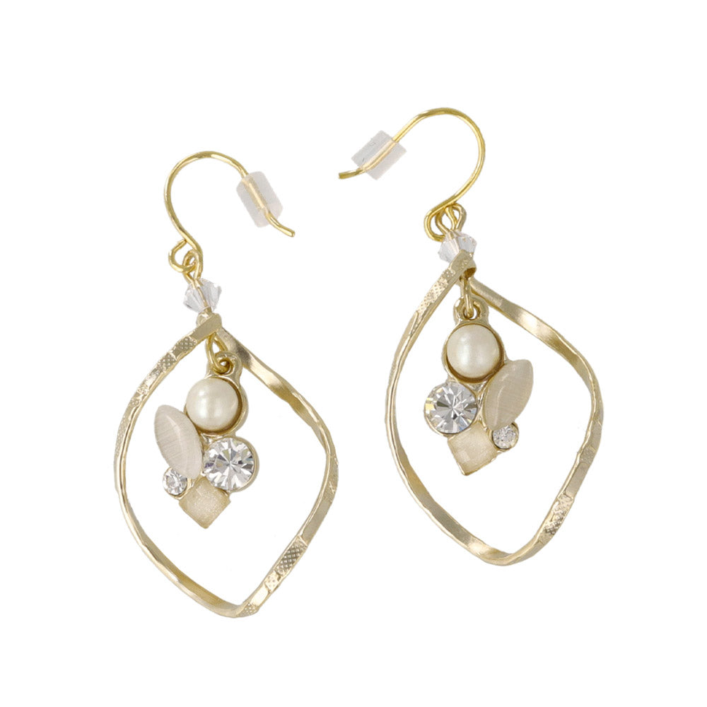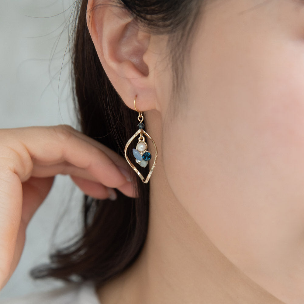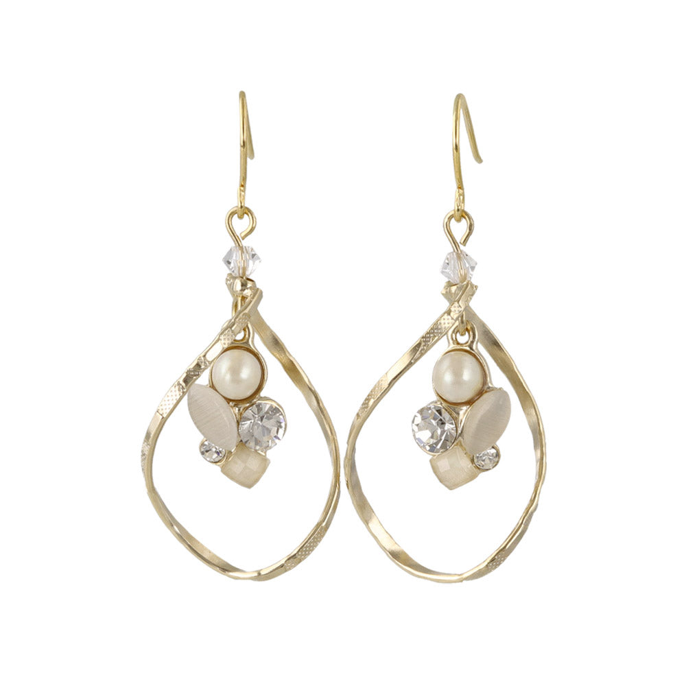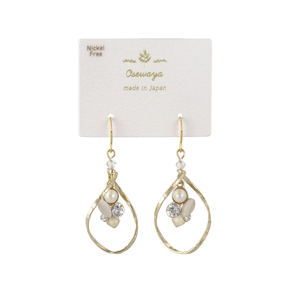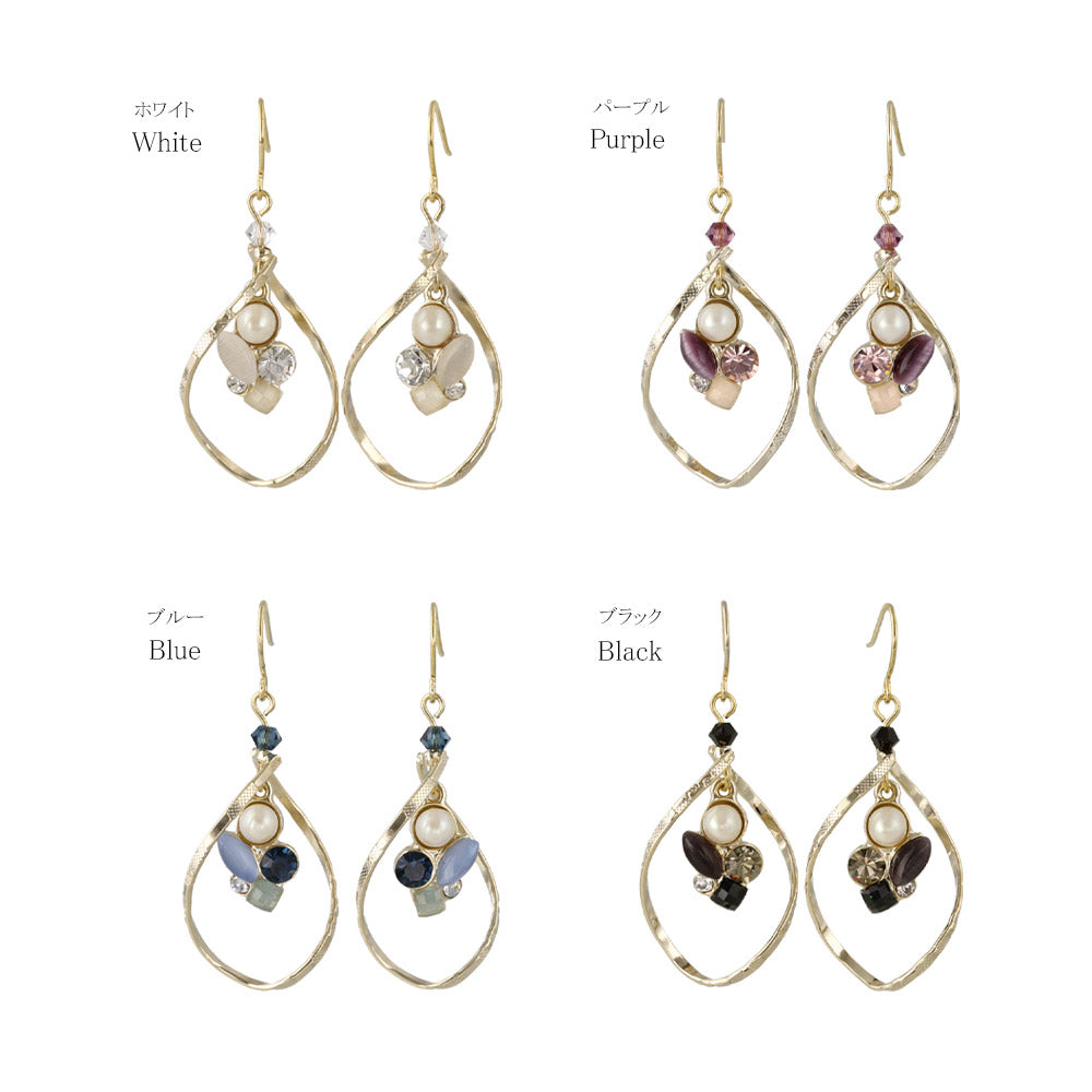Material: alloy, brass, glass, faux pearl, faux cat's eye stone, surgical steel earring post