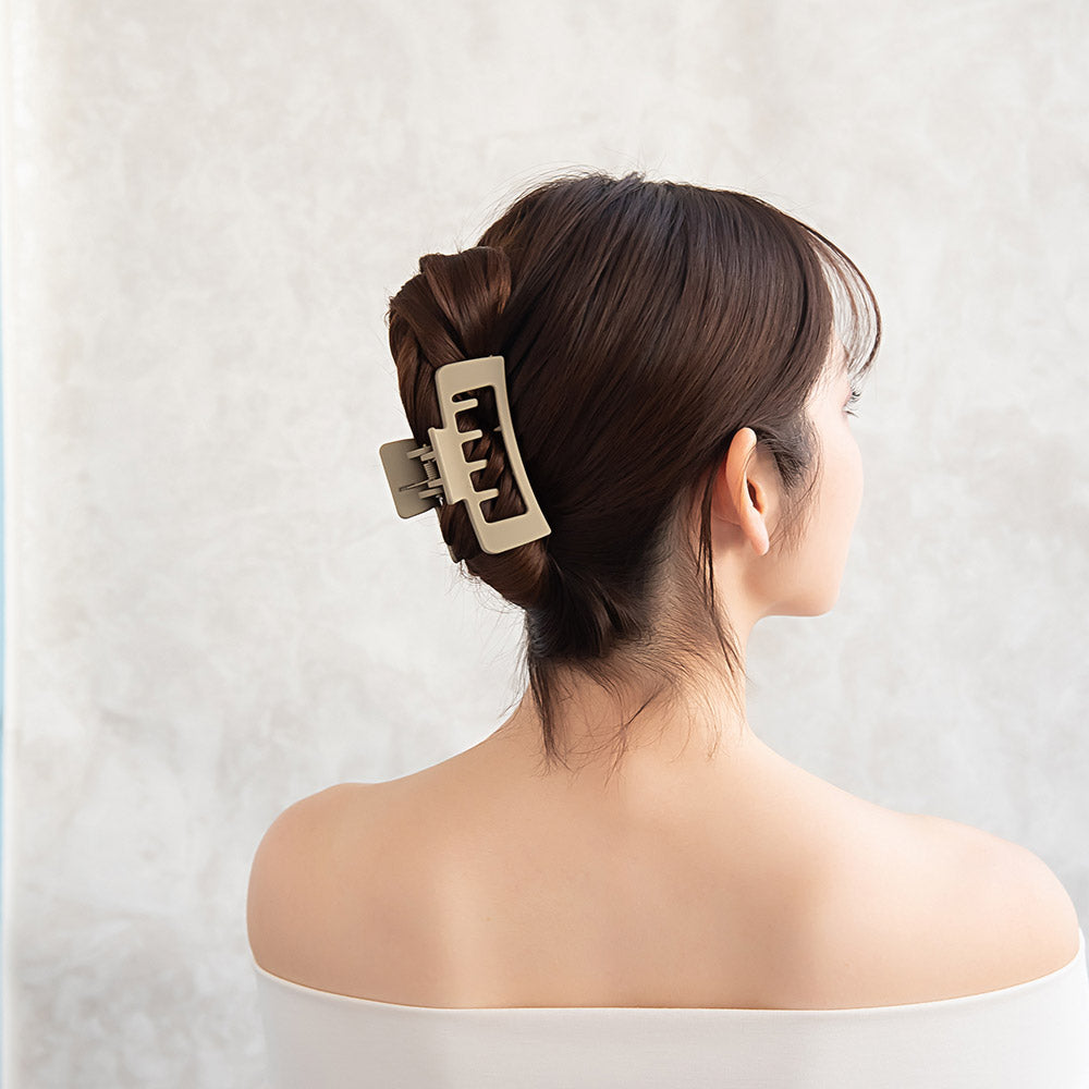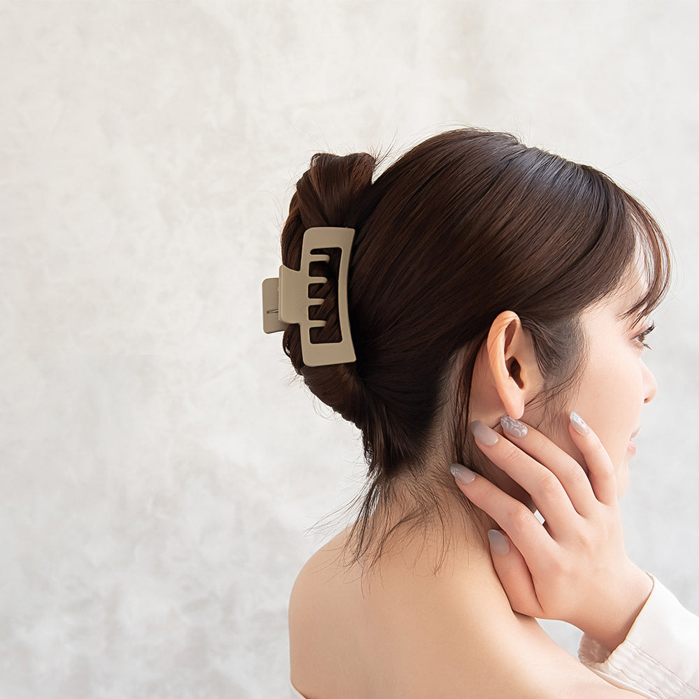 Elevate your staple collection with our Matte Open Rectangle Hair Claw. This chic hair clip features a modern, rectangle design in a muted tone, adding a subtle edge and personality to any hairstyle. Whether you’re dressing up or keeping it casual, this hair clip effortlessly blends style and function.