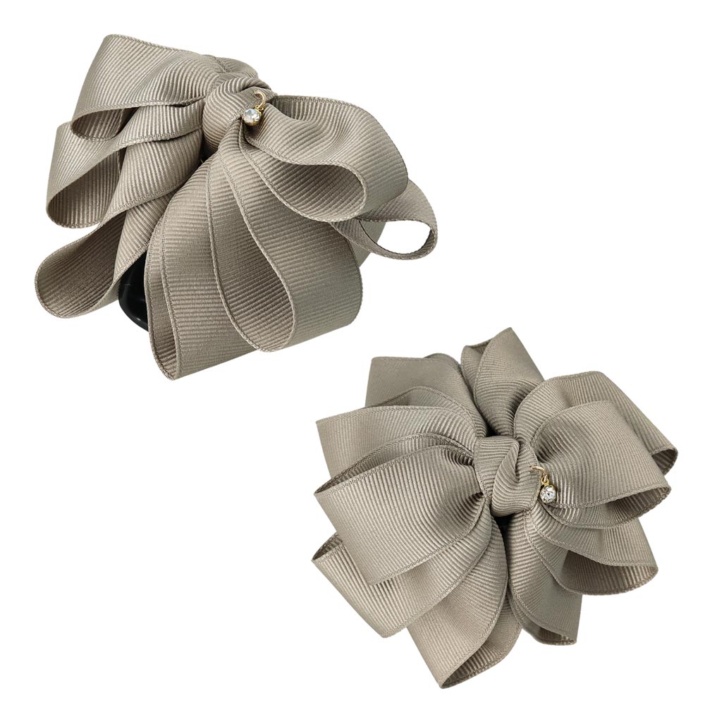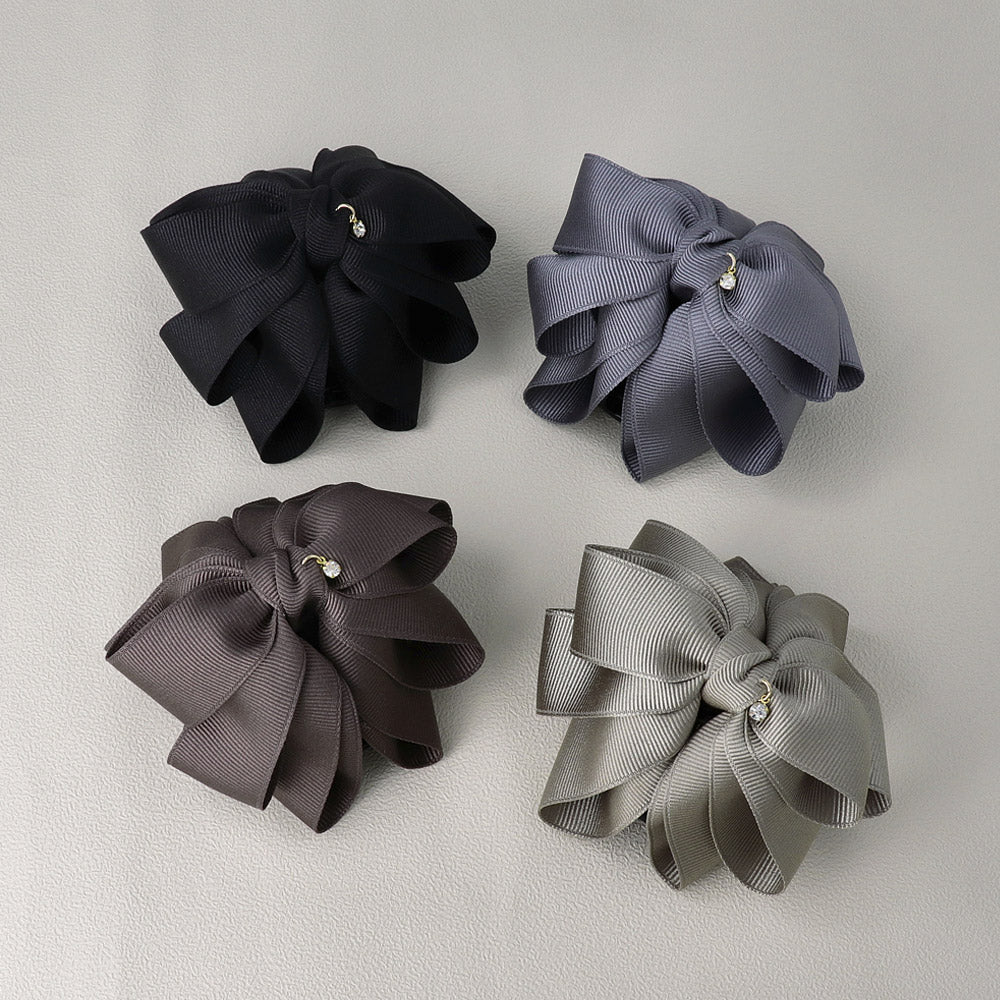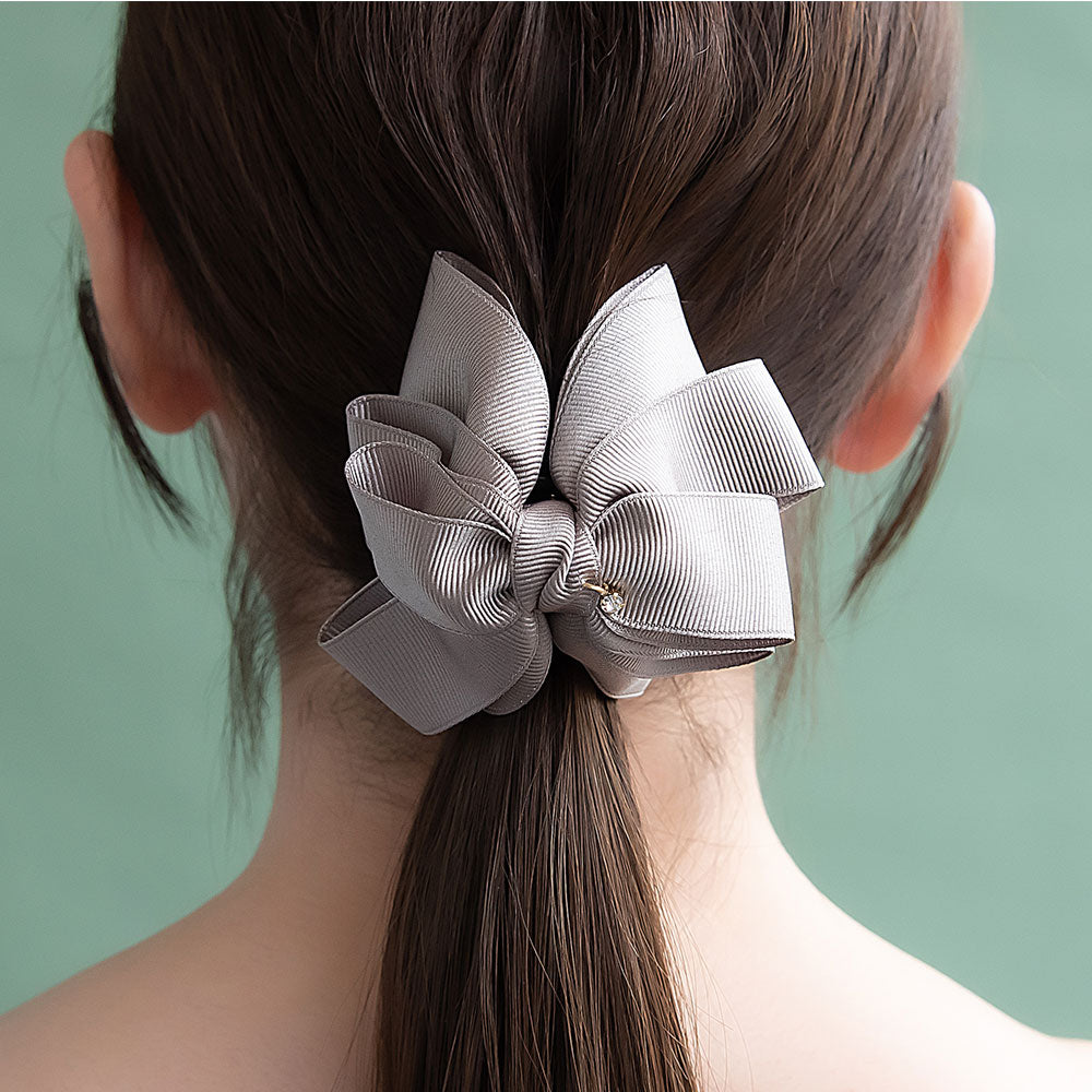 Effortlessly elevate your look with our Layered Grosgrain Bow Hair Claw. Designed with a soft round silhouette and layered grosgrain bows in muted tones, this claw clip brings subtle charm and modern elegance to any hairstyle. Whether you're styling for a special occasion or adding a refined touch to your everyday ensemble, this versatile accessory is your go-to for instant polish.