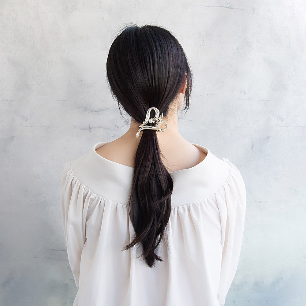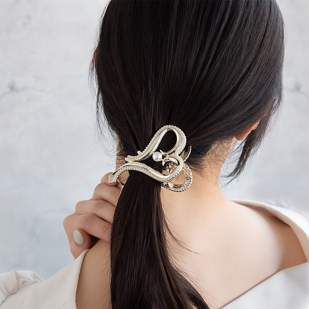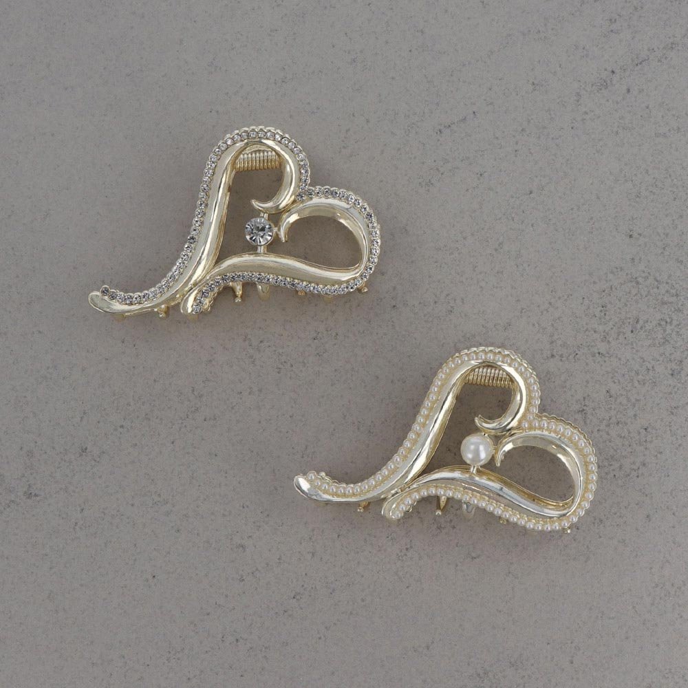 Add a romantic touch to your hairstyle with our Studded Open Heart Hair Claw. Made with a flowing heart design with a dazzling, studded detail, this hair clip is perfect for both everyday wear and special occasions. Treat yourself to a little luxury—express your true self with every wear.
