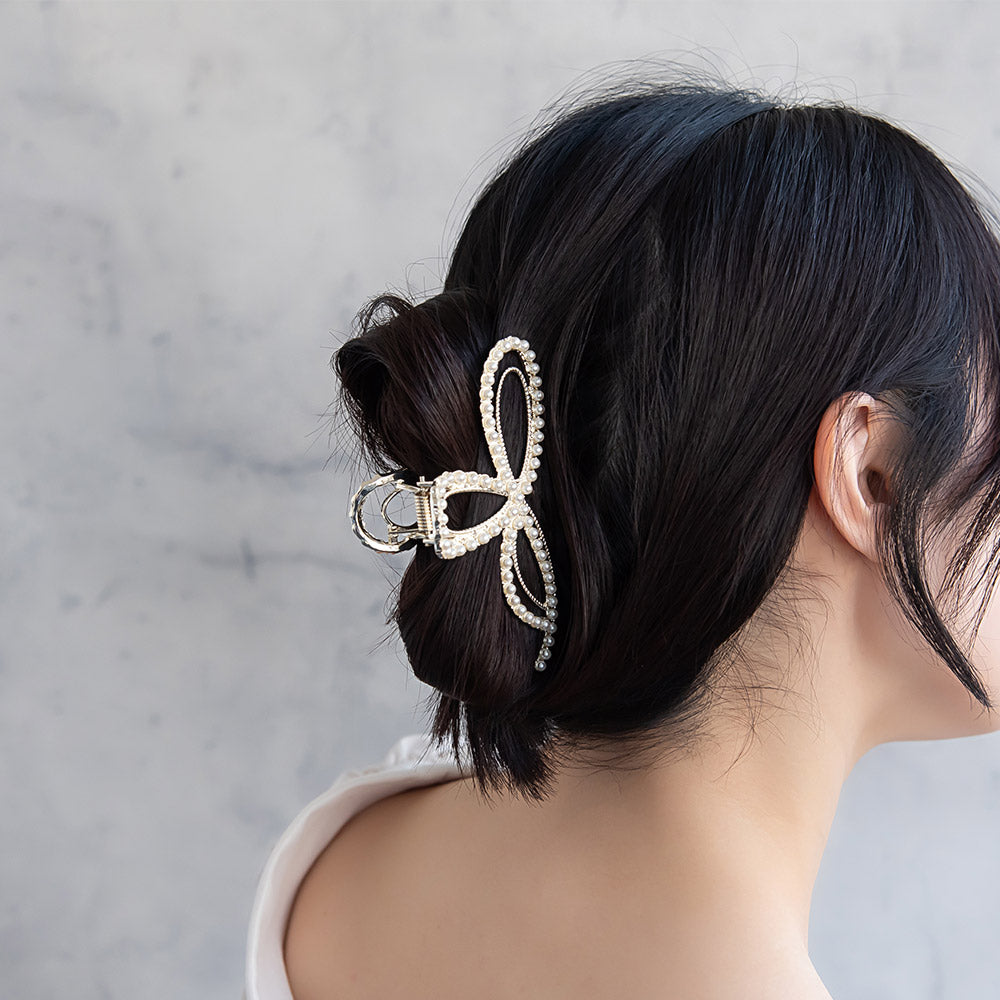 Add a romantic touch to your hairstyle with our Studded Ribbon Bow Hair Claw. Made with a flowing bow design with a dazzling, studded detail, this hair clip is perfect for both everyday wear and special occasions. Treat yourself to a little luxury—express your true self with every wear.