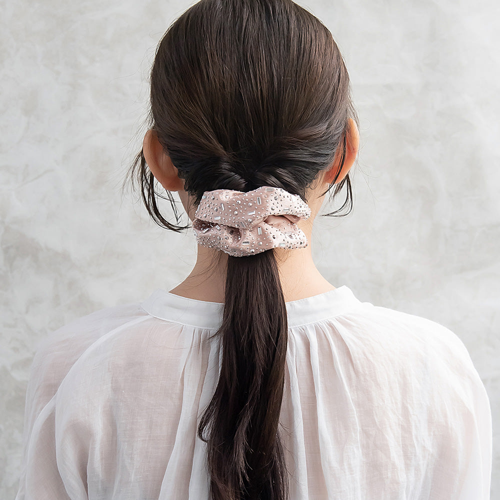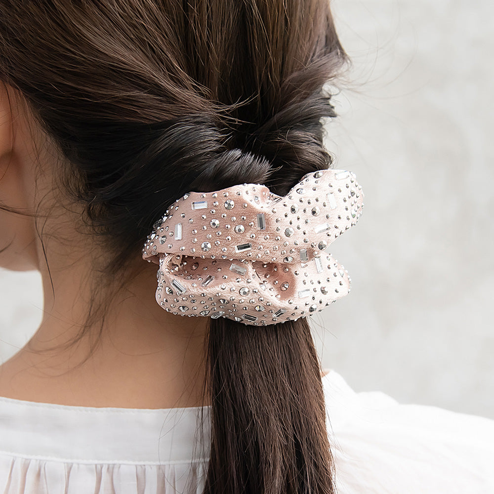 Elevate your everyday look with our Studded Satin Scrunchie. Crafted from soft and sleek material and accented with a dazzling stud accents, this scrunchie adds instant glam to any hairstyle. Whether you’re styling a casual updo or finishing off a chic date-night look, its versatile charm makes it the perfect accessory for every occasion.