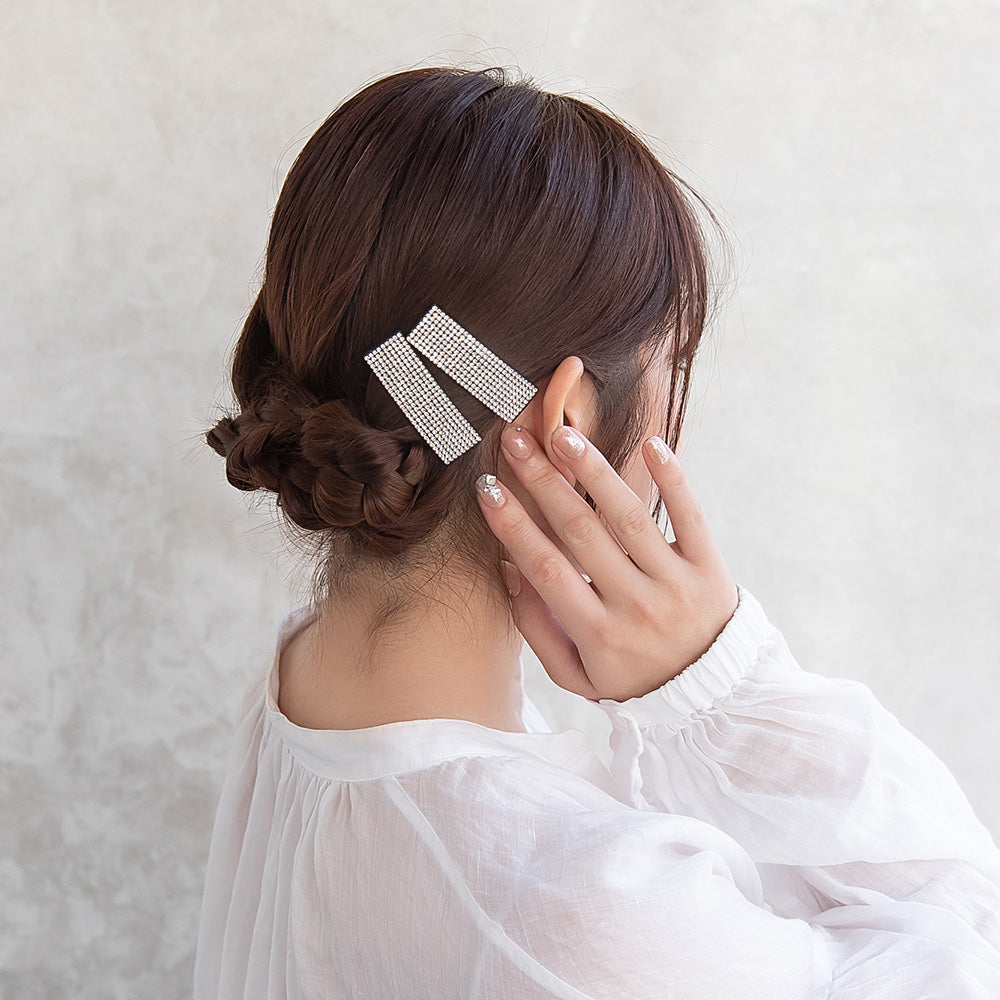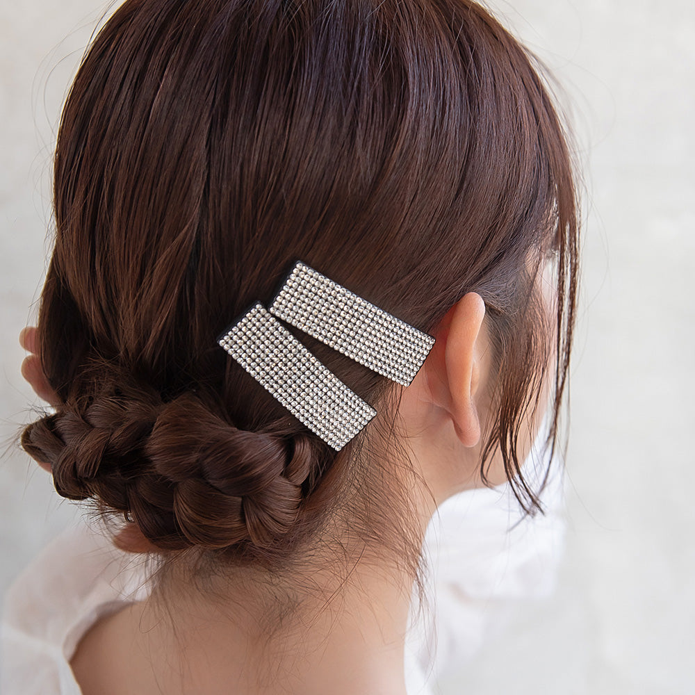 Elevate your hairstyle with our Pave Rectangle Snap Clip Set. Featuring dazzling stone accents on a modern rectangular base, these easy-to-use snap clips add a touch of instant glamour and sophistication to any look. Whether you're dressing up for a wedding, a holiday party, or simply adding elegance to your everyday ensemble, this versatile accessory set is a must-have all year round. Clip one in, or wear them both for a layered statement, and get ready to shine!