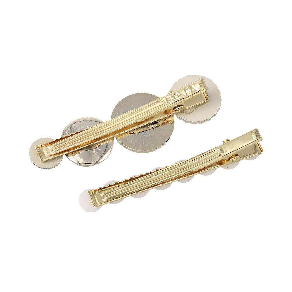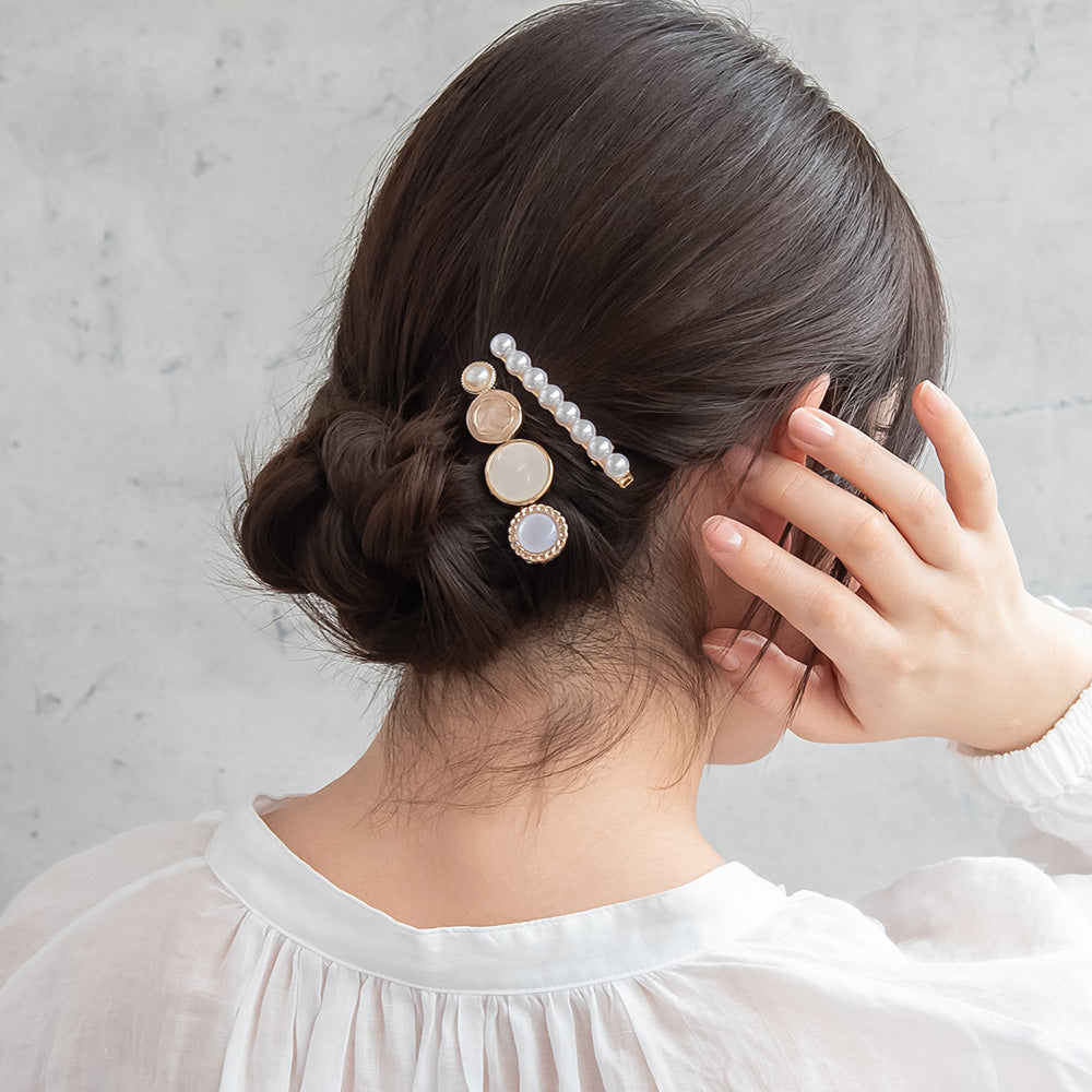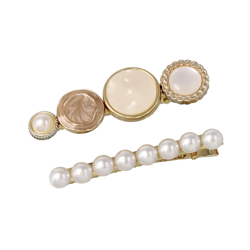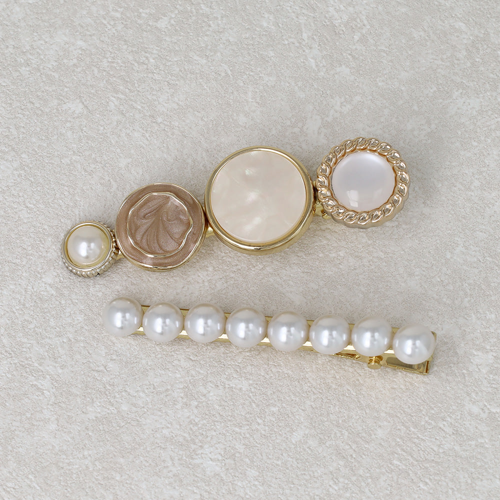 Elevate your everyday look with our Decorative Button Hair Clip Set. This charming duo features two distinct designs: one adorned with an eclectic mix of vintage-inspired buttons and the other featuring a classic line of shimmering pearls. Whether you're dressing up for a coffee date or adding a touch of romance to your work-from-home style, these clips are the perfect finishing touch for any aesthetic.