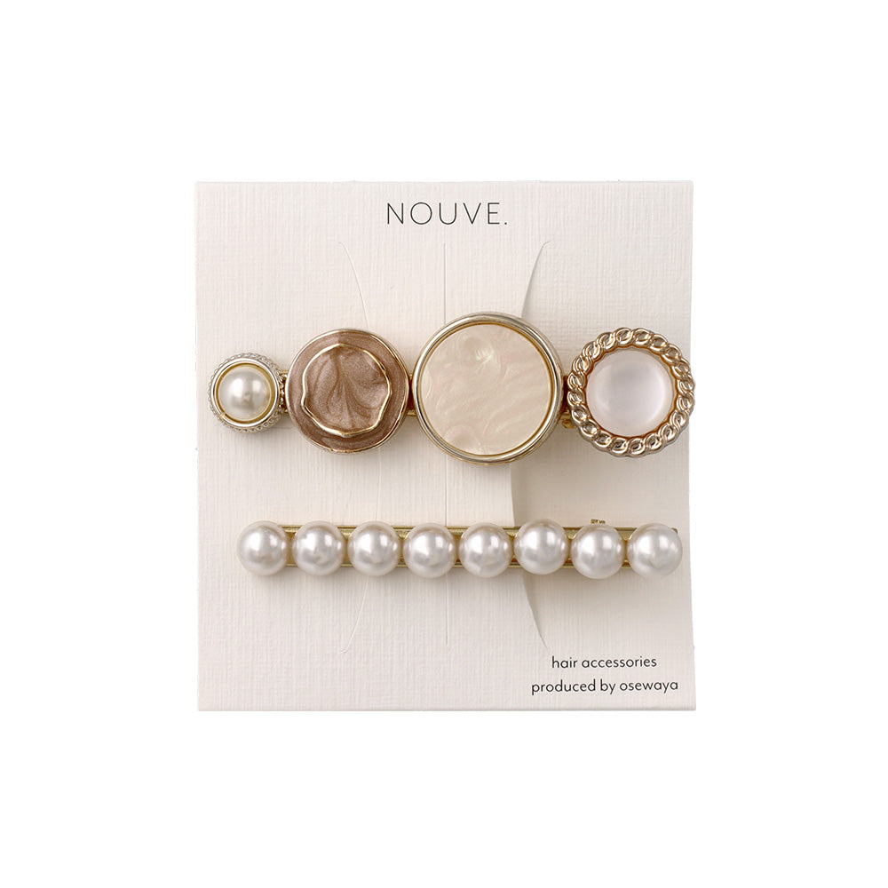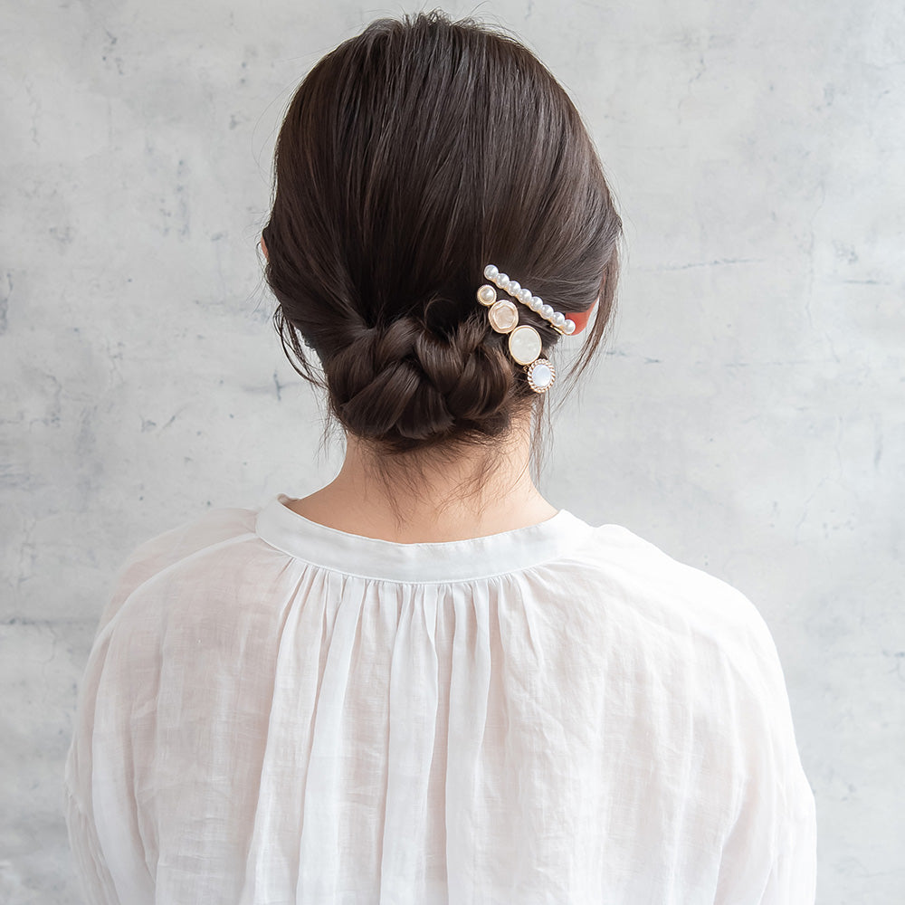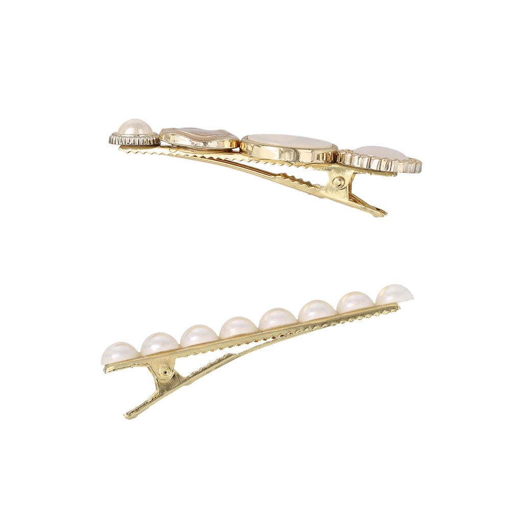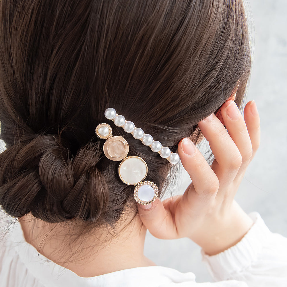 Elevate your everyday look with our Decorative Button Hair Clip Set. This charming duo features two distinct designs: one adorned with an eclectic mix of vintage-inspired buttons and the other featuring a classic line of shimmering pearls. Whether you're dressing up for a coffee date or adding a touch of romance to your work-from-home style, these clips are the perfect finishing touch for any aesthetic.