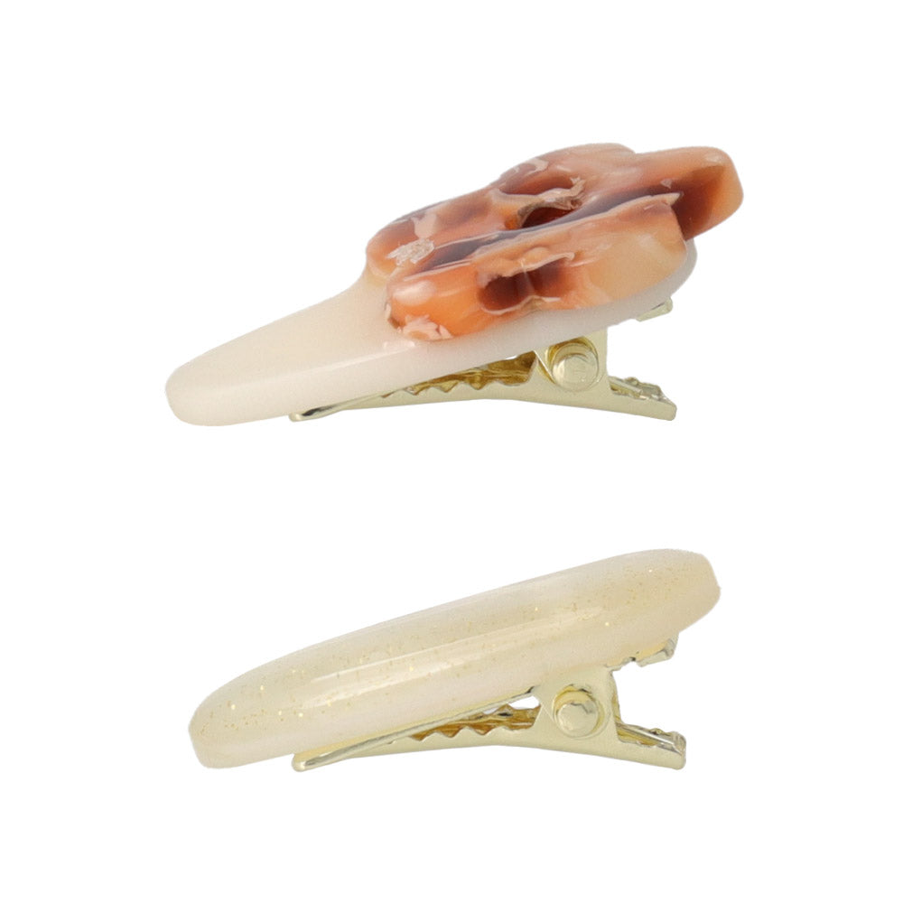 Elevate your everyday hair look with our Marble Flower Mini Pinch Clip Set. With elegant detailing and a subtle shimmer from a marble finish, this hair clip set has a sophisticated feel for any outfit. Make your hair game more fun and exciting with this effortless accessory.