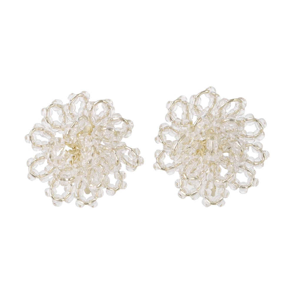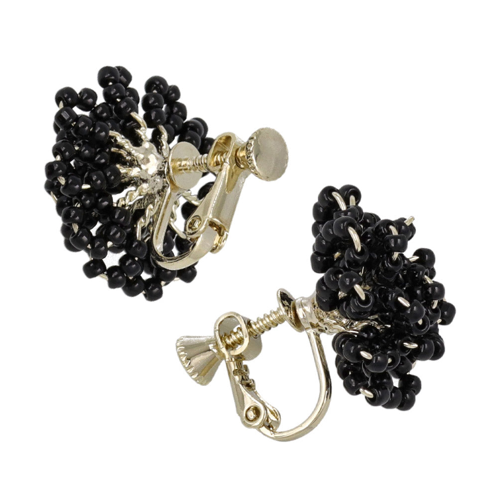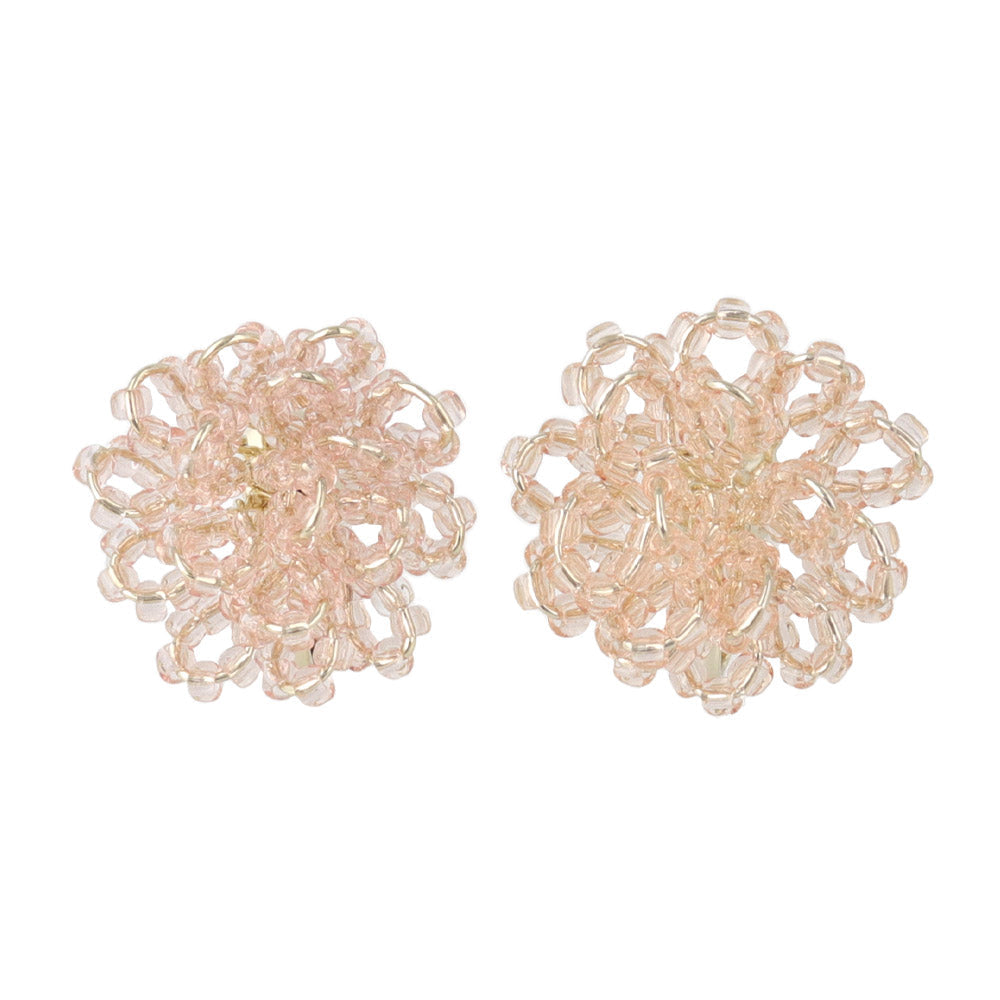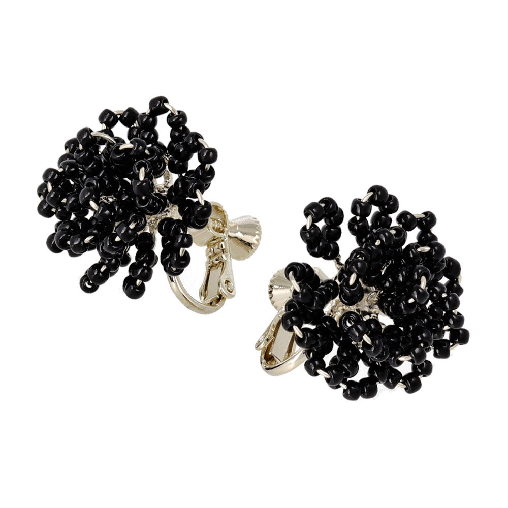 Beaded Flower Clip On Earrings