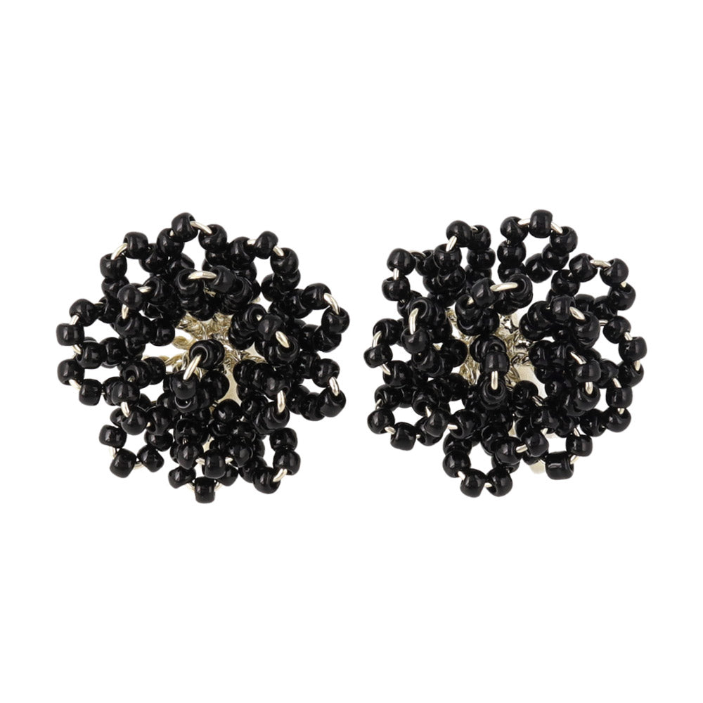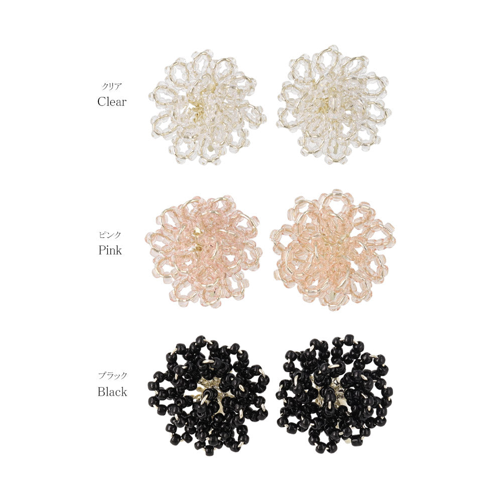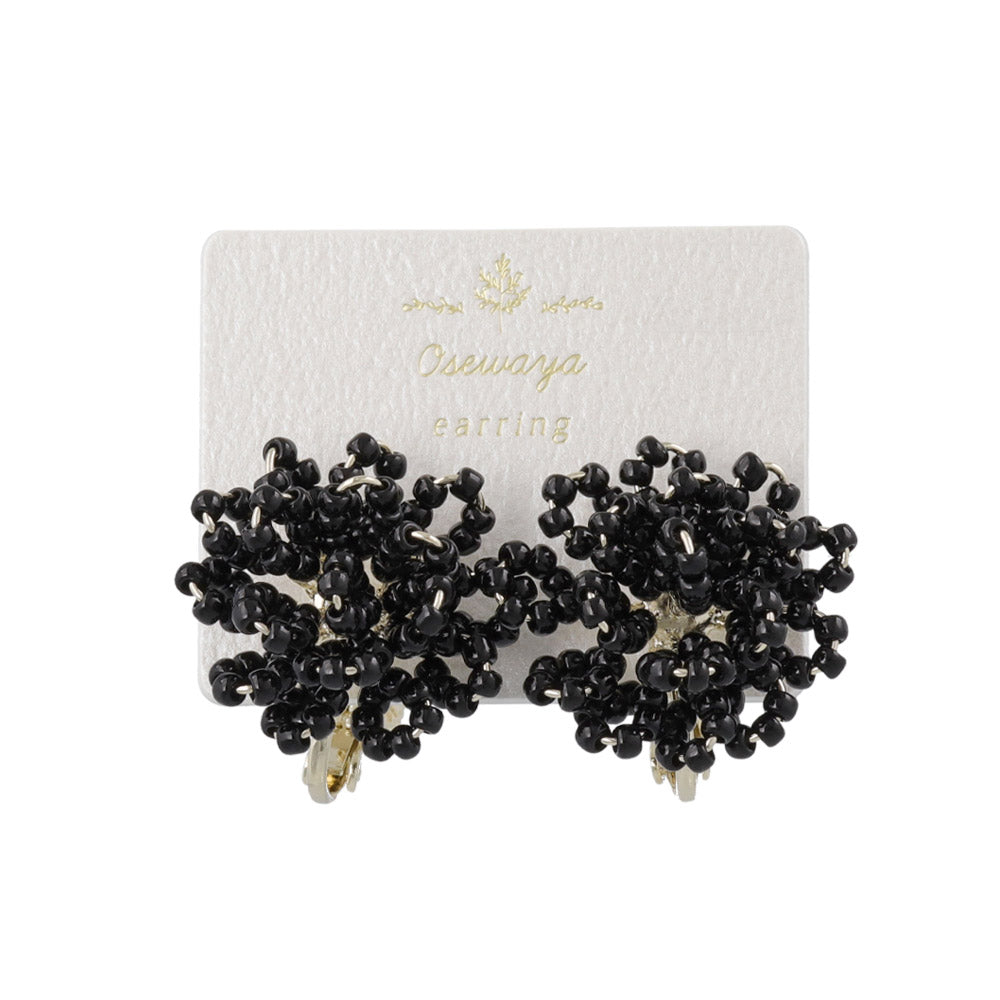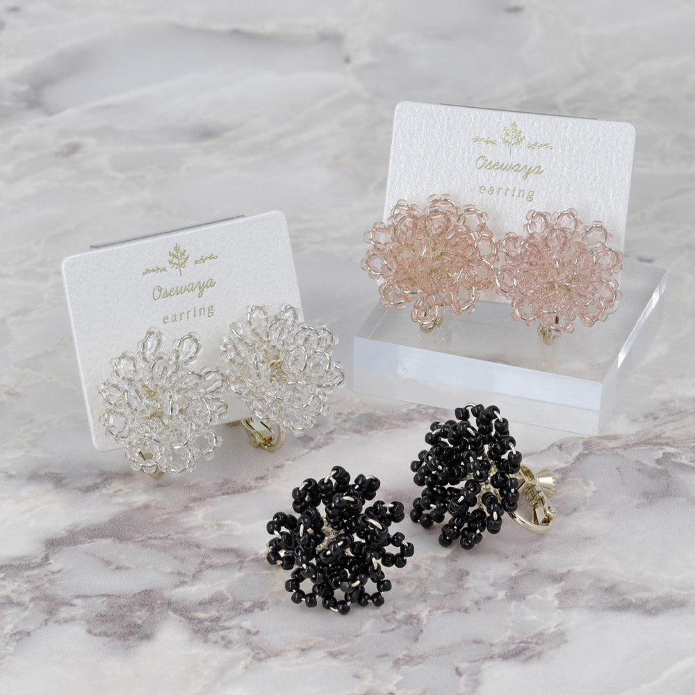 Beaded Flower Clip On Earrings