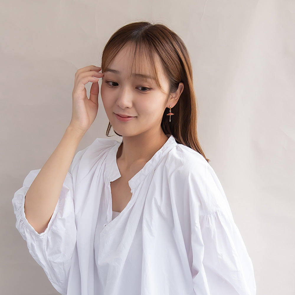Elevate your outfit with the essence of Japanese autumn. Our Momiji Umbrella Drop Souvenir Earrings are a beautiful tribute to the Japanese maple (momiji), adding a sense of fleeting elegance — a moment suspended between freshness and nostalgia. Designed to complement traditional attire such as kimono and yukata, they also lend a refined, poetic touch to contemporary styles. Let their gentle shimmer carry the timeless spirit of the season wherever you go.