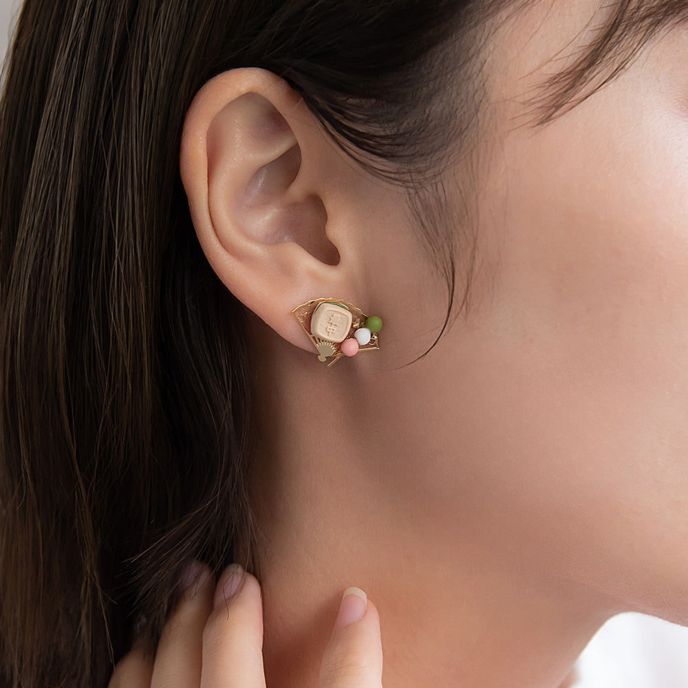 Embrace the essence of “Wa”—harmony and gentle beauty—with our Matcha and Wagashi Mismatched Earrings. One earring showcases an intricate dish of wagashi, while the other features a cozy cup of matcha tea. Together, they create a charming, story-filled duo. Designed to complement both kimono and yukata, yet effortlessly suited to modern everyday fashion, these earrings offer a touch of quiet elegance for meaningful moments, special occasions, and peaceful daily wear.