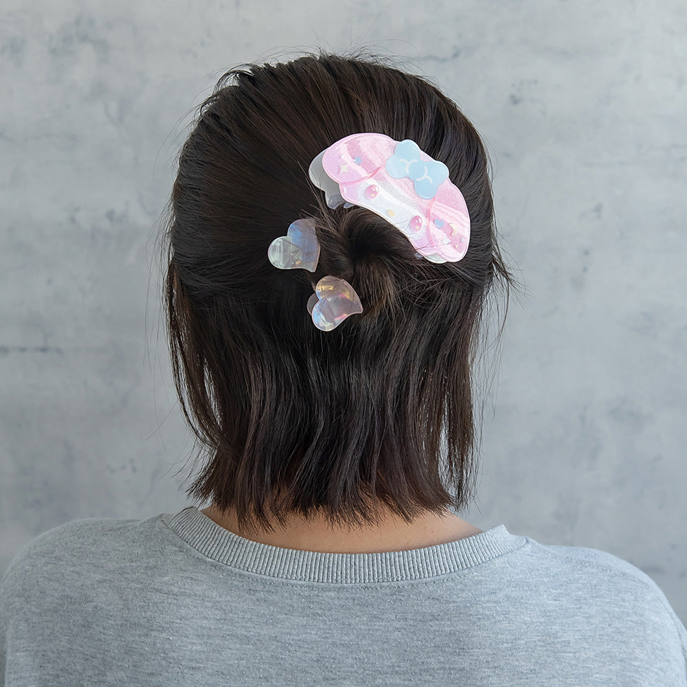 Your favorite Sanrio friends are now super-cute hair accessories! This dreamy and cute set includes three charming hair clips that are perfect for wearing individually or layering together, adding a kawaii finishing touch to any outfit. Whether you are preparing for oshi-katsu or simply elevating your everyday ensemble, this stunning accessory set is a delightful standout in your wardrobe.